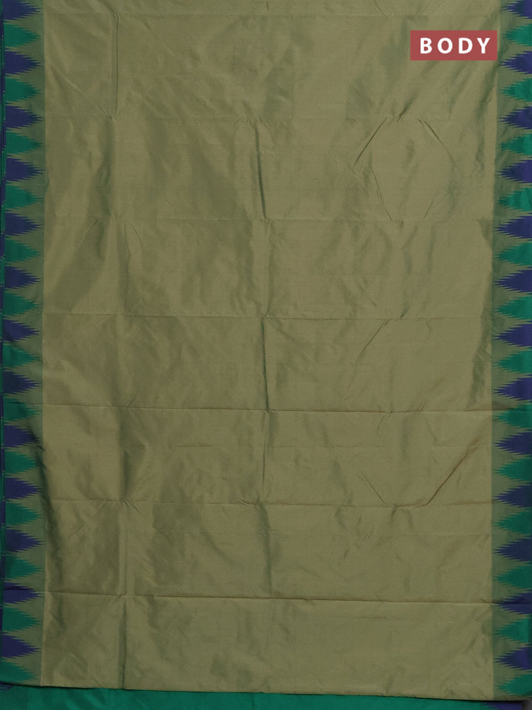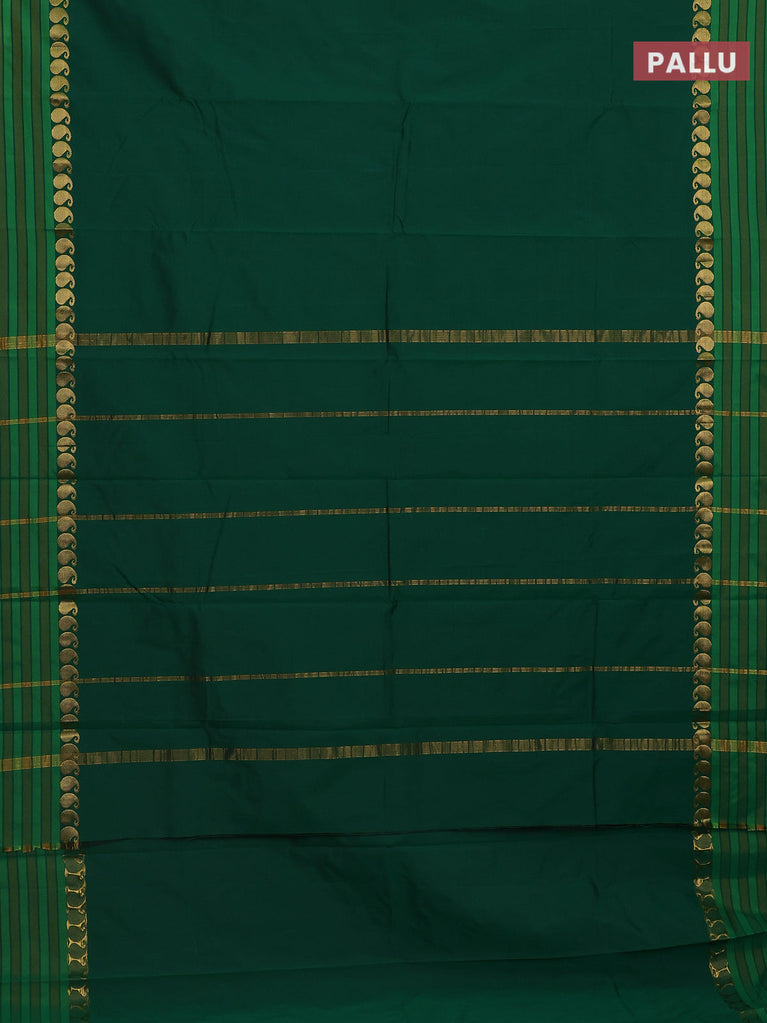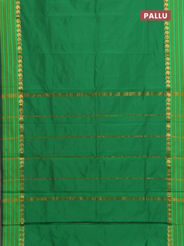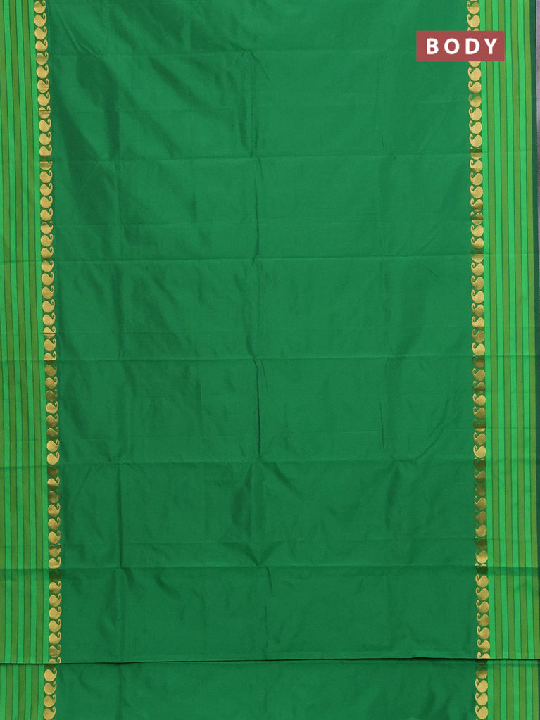 Arani semi silk saree green and light green with plain body and paisley zari woven simple border
