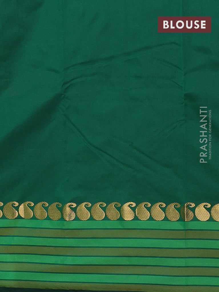Arani semi silk saree green and dark sap green with allover silver & copper zari weaves and zari woven border