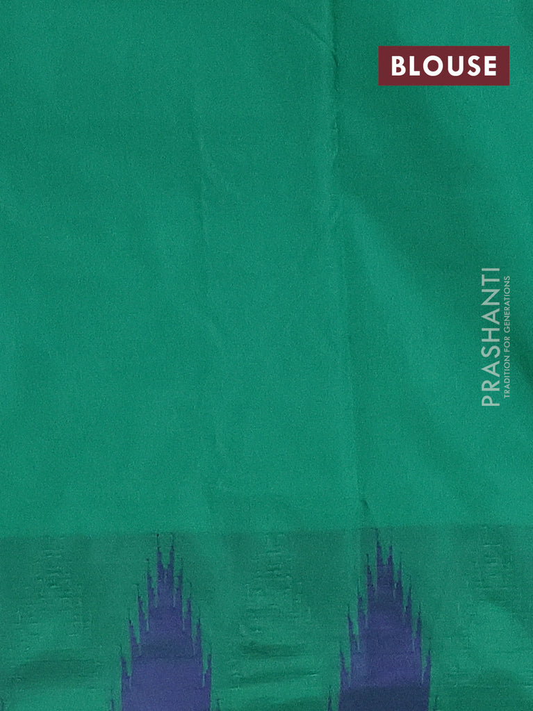 Arani semi silk saree green with zari woven temple buttas and zari woven border