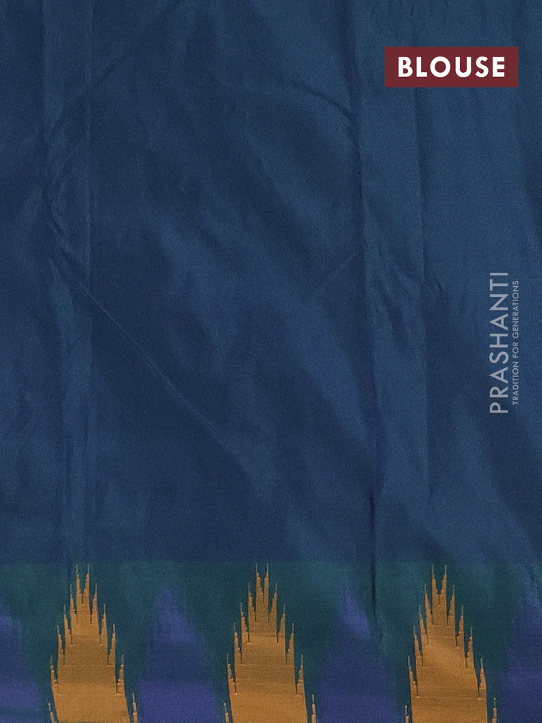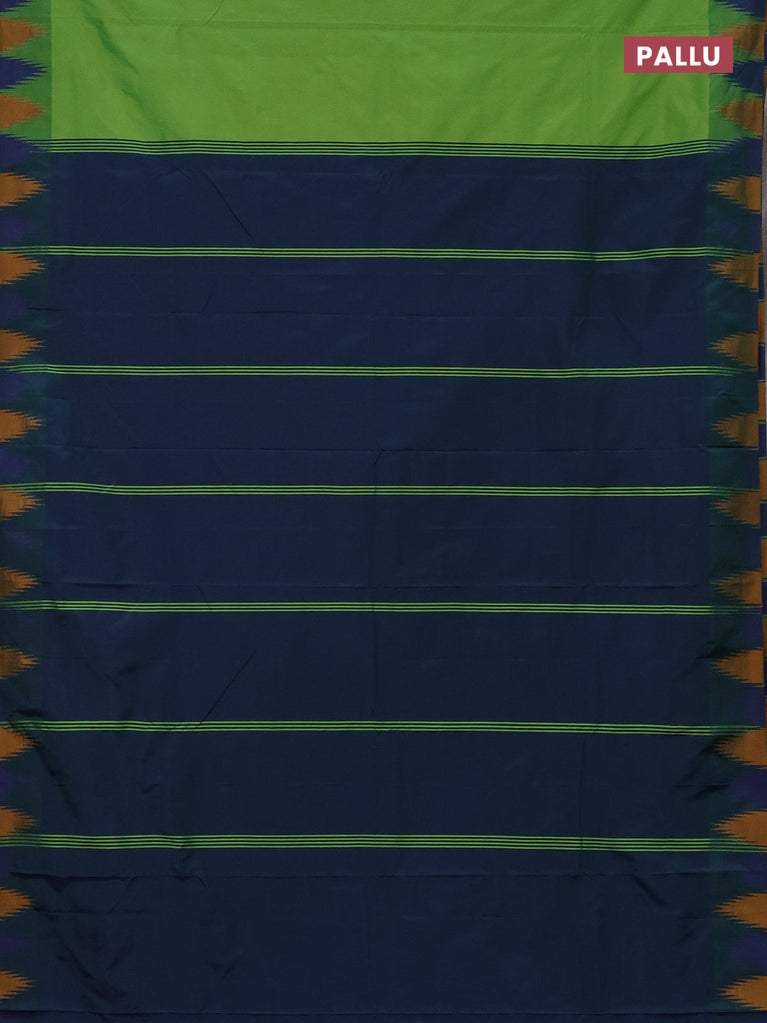 Arani semi silk saree light green and dual shade of blue with plain body and temple design border