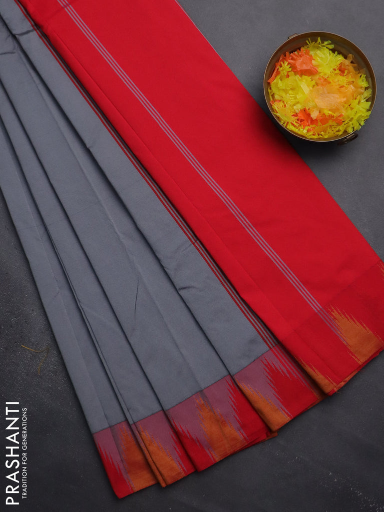 Arani semi silk saree grey shade with allover thread weaves in borderless style