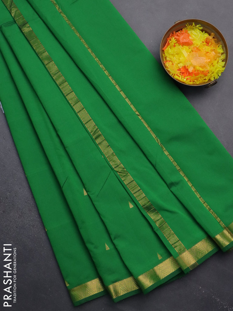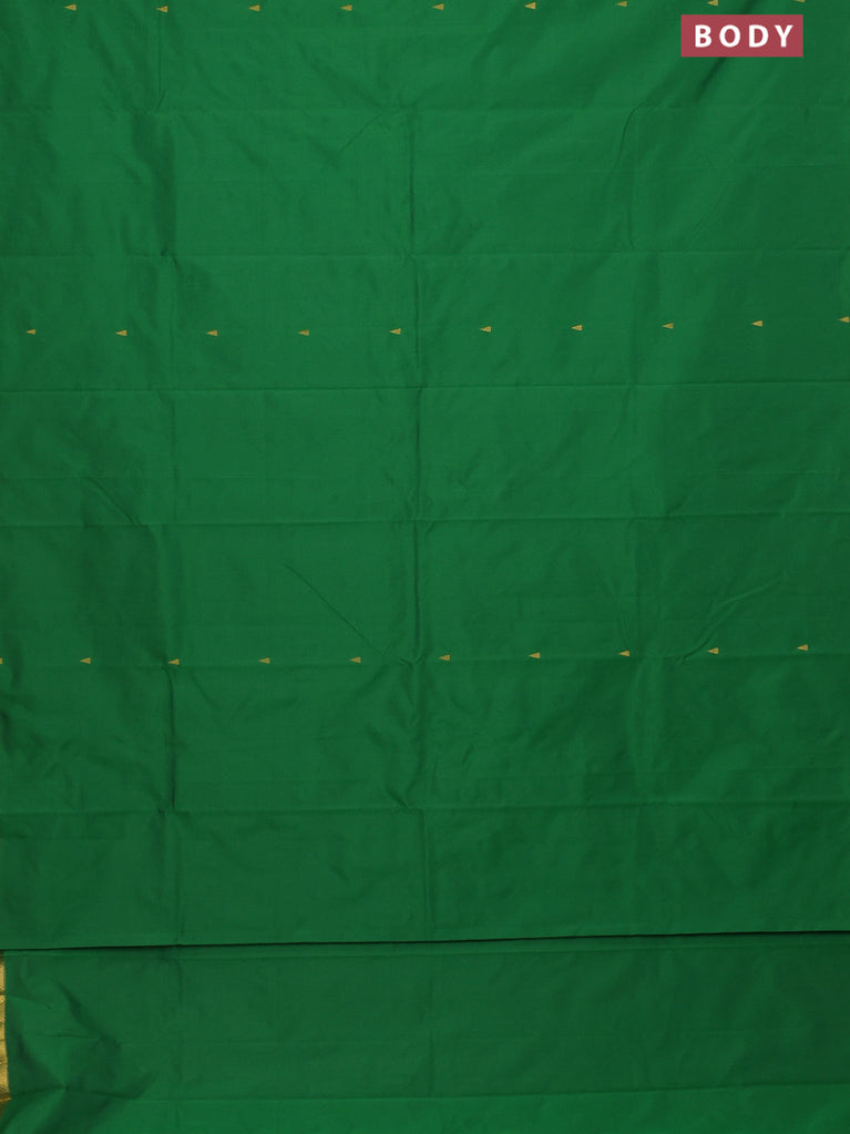Arani semi silk saree green with zari woven thilak buttas and zari woven border