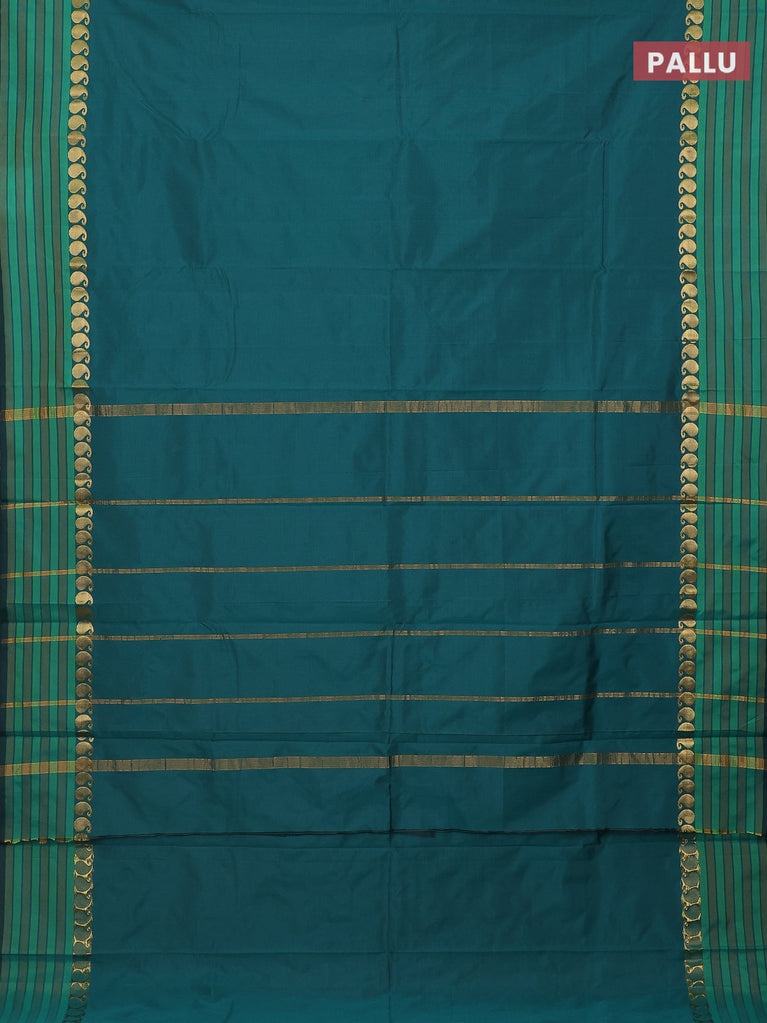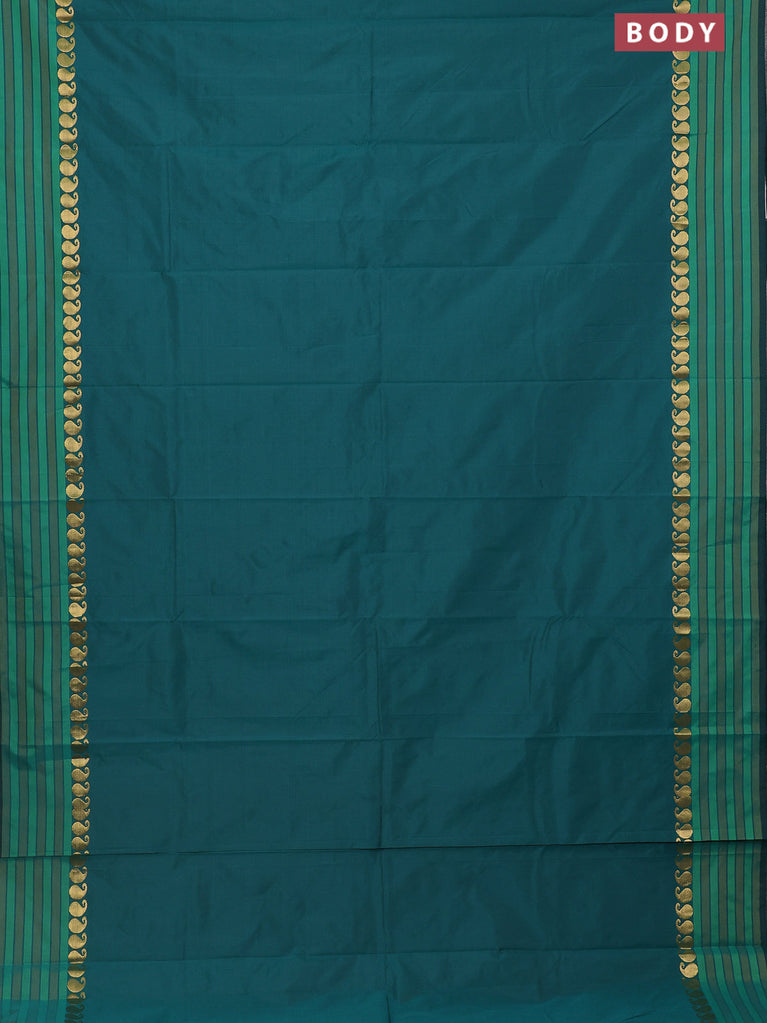Arani semi silk saree peacock green with plain body and small zari woven border