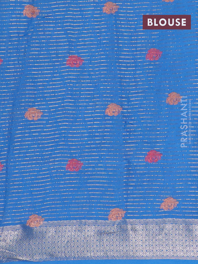 Assam silk saree light blue with allover zari weaves & floral embroidery work buttas and zari woven border
