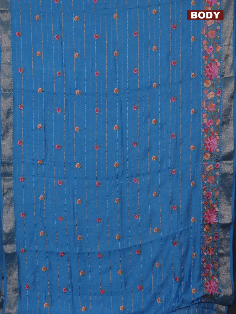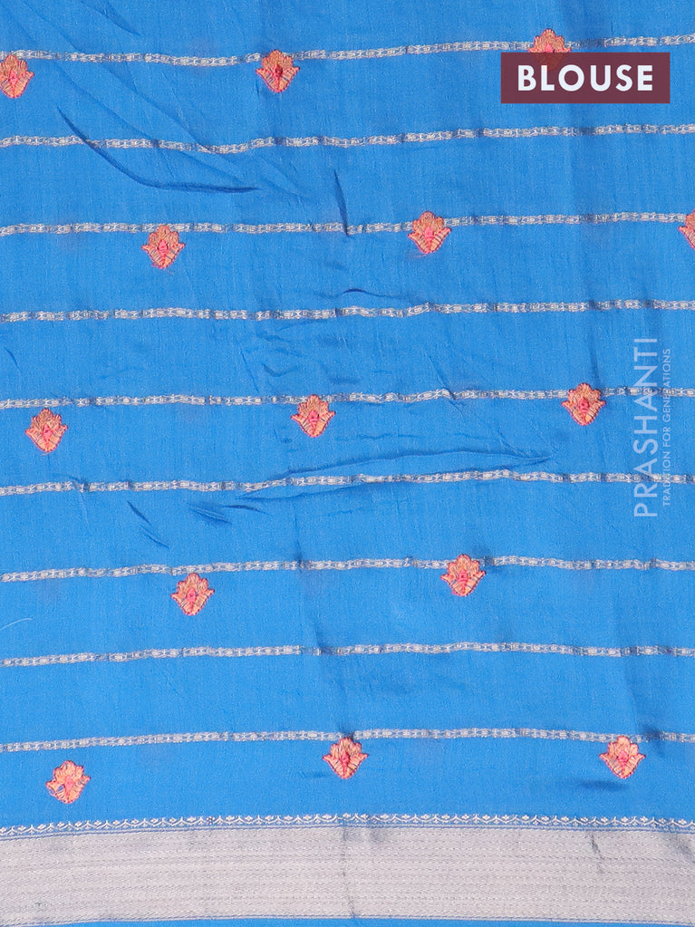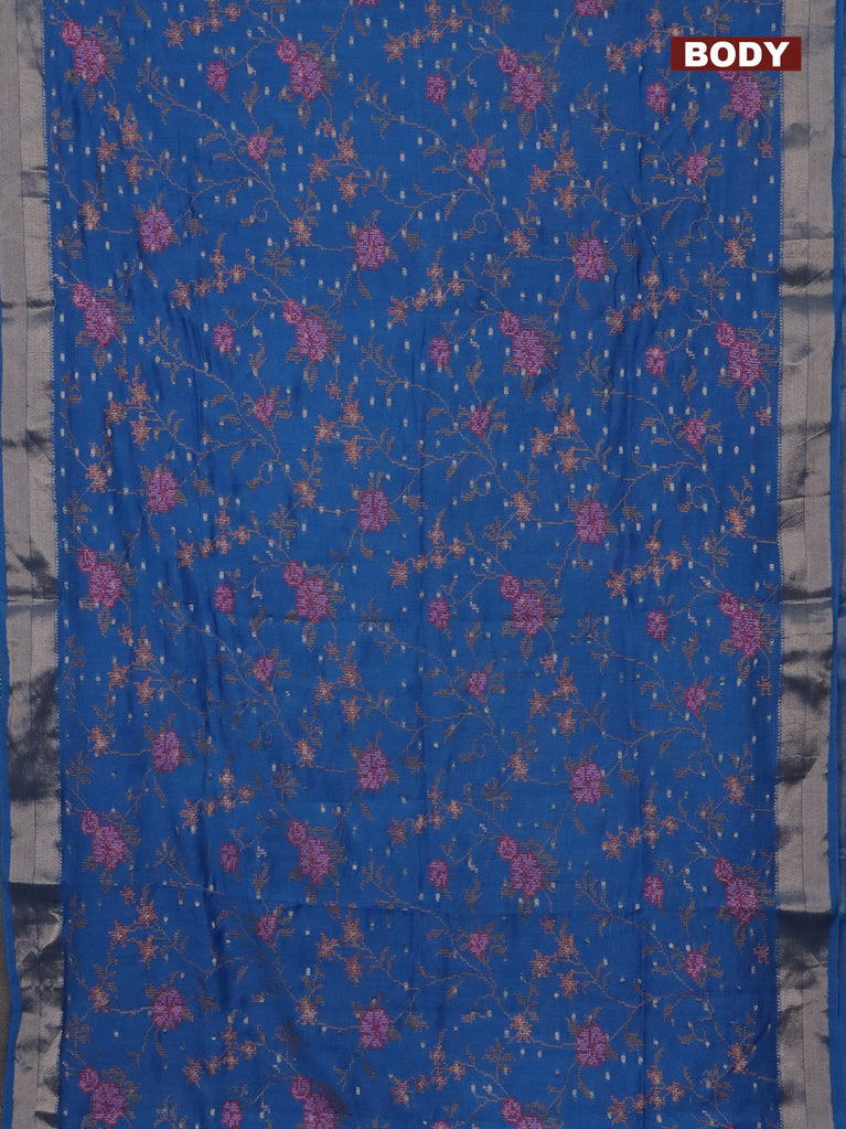 Assam silk saree blue shade with allover zari weaves & floral embroidery work buttas and zari woven border