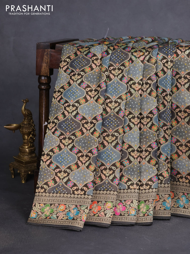 Banarasi georgette saree black and grey with bandhani prints & mina weaves