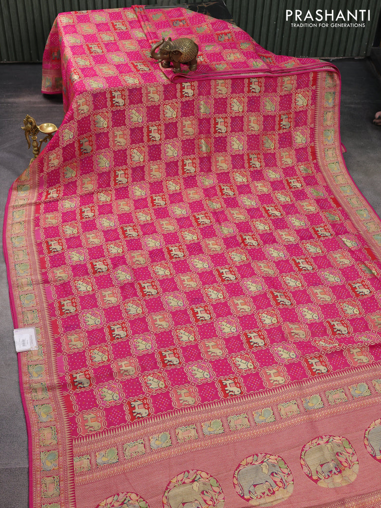 Banarasi georgette saree pink with bandhani prints & mina weaves