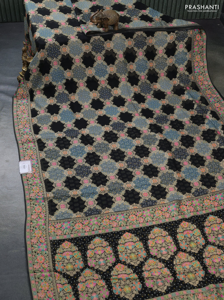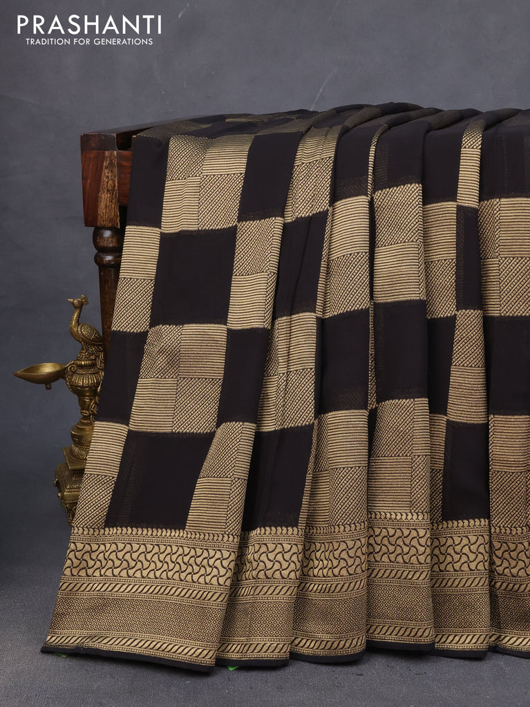 Banarasi georgette saree black with allover geometric zari weaves and zari woven border