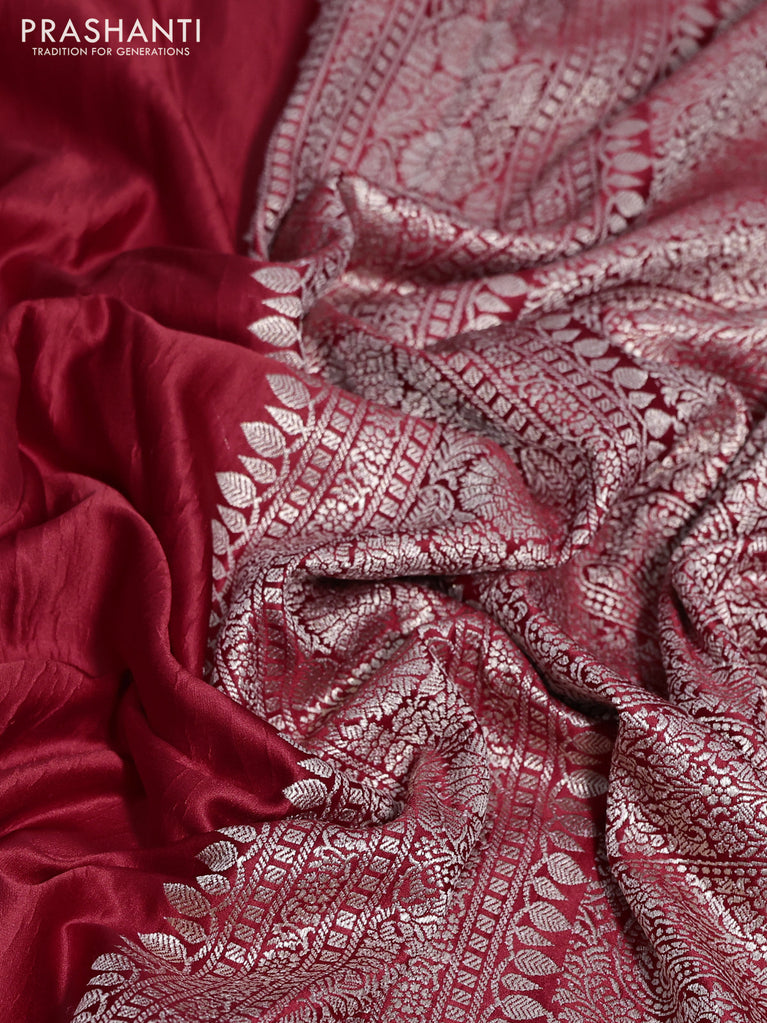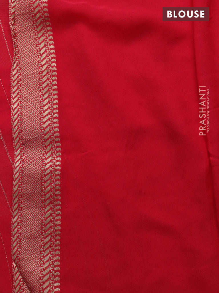 Banarasi crush crepe saree red with plain body and zari woven border