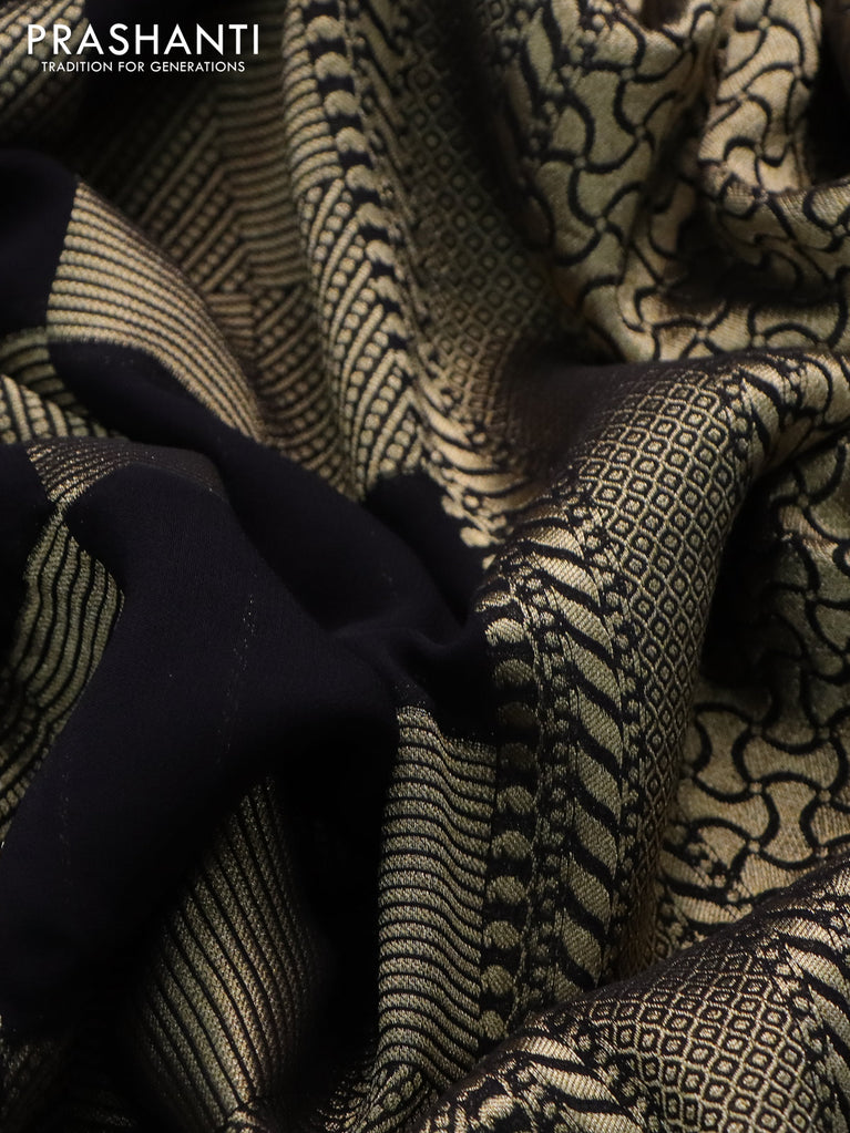 Banarasi georgette saree navy blue with allover geometric zari weaves and zari woven border