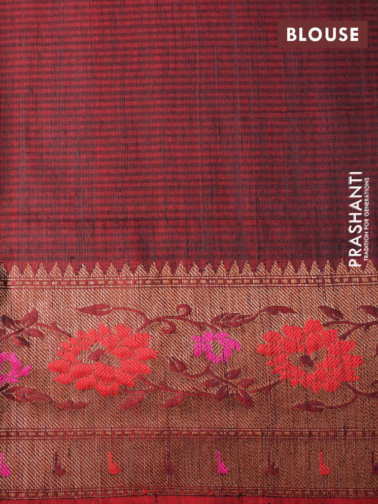 Banarasi dupion silk saree black and red with zari woven buttas and floral design paithani style border