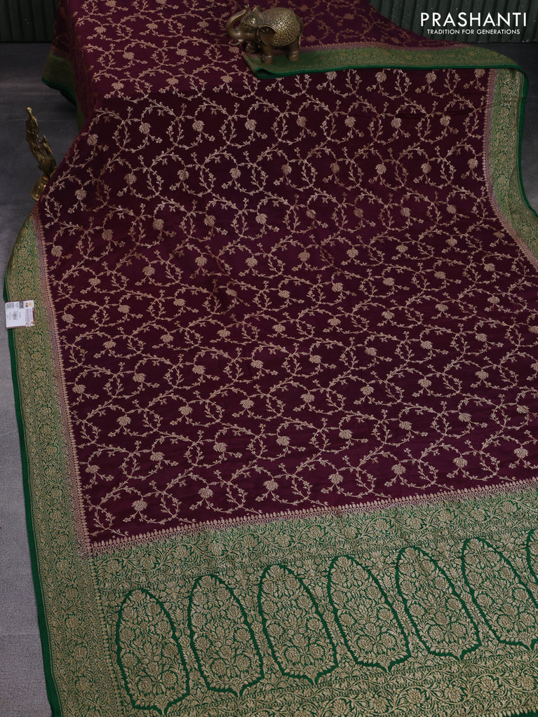 Banarasi crepe saree wine shade and green with allover thread & zari weaves and woven border
