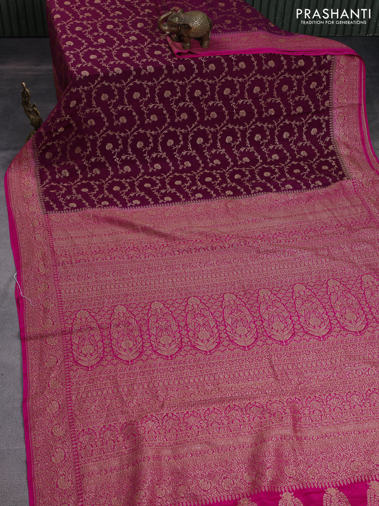 Banarasi crepe saree wine shade and pink with allover thread & zari weaves and woven border