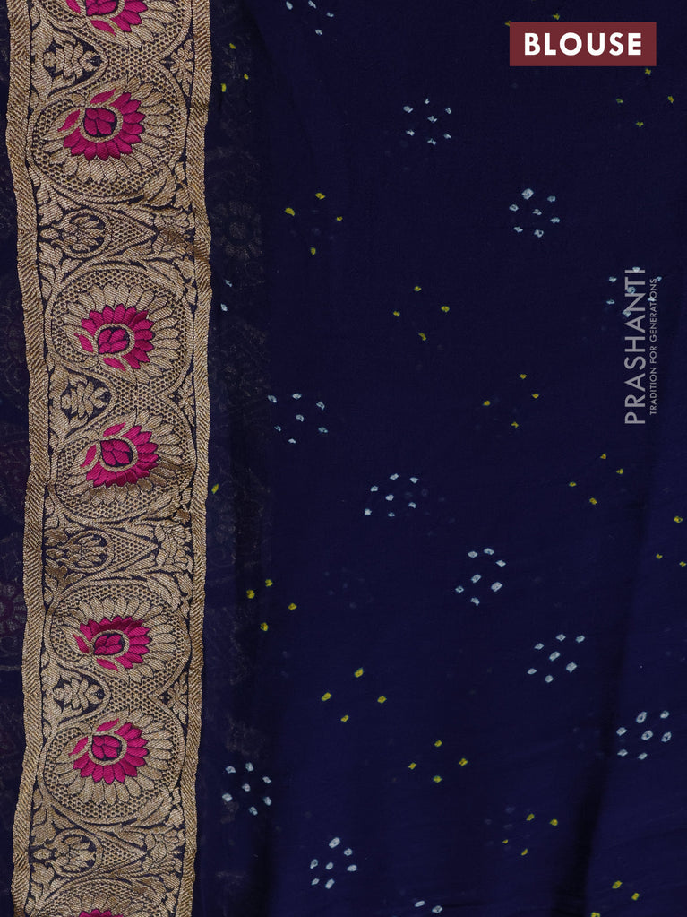 Banarasi georgette saree navy blue with bandhani prints & mina weaves and woven border