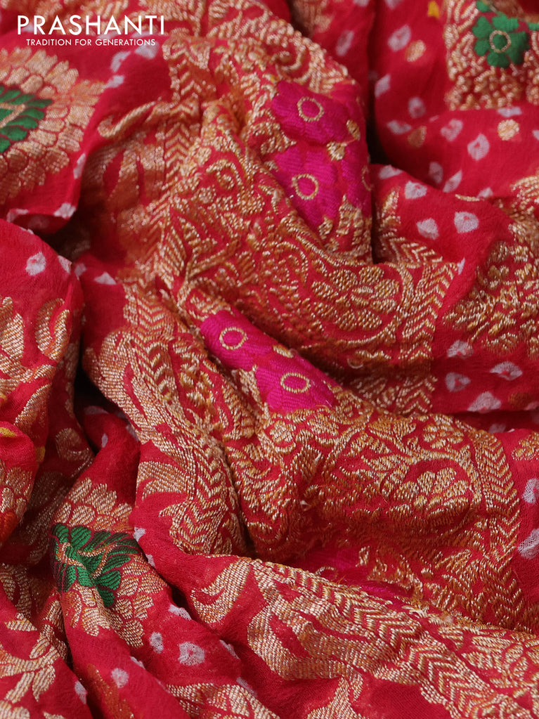 Banarasi georgette saree orange and red with bandhani prints & mina weaves and woven border