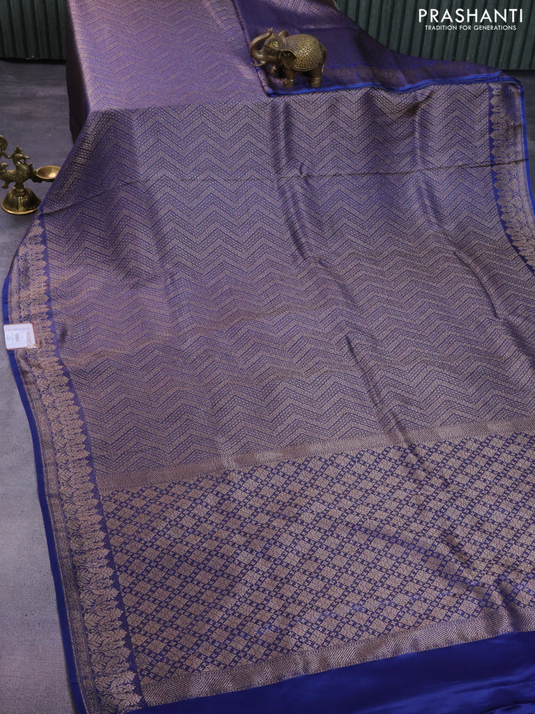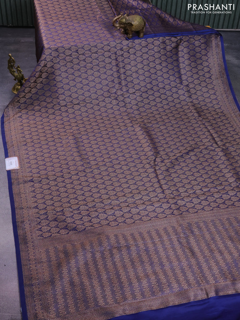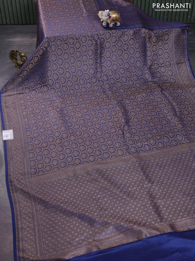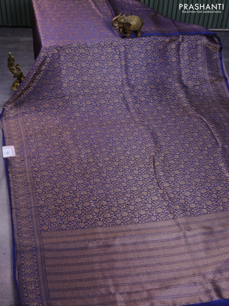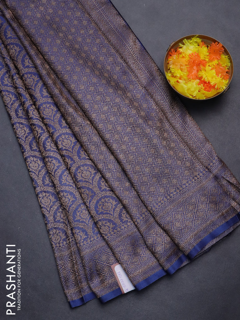 Banarasi semi crepe saree blue with allover thread & zari woven brocade weaves and woven border