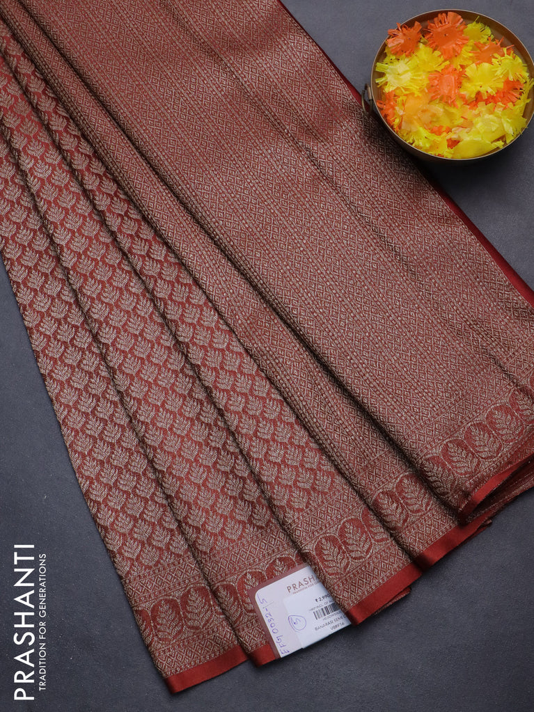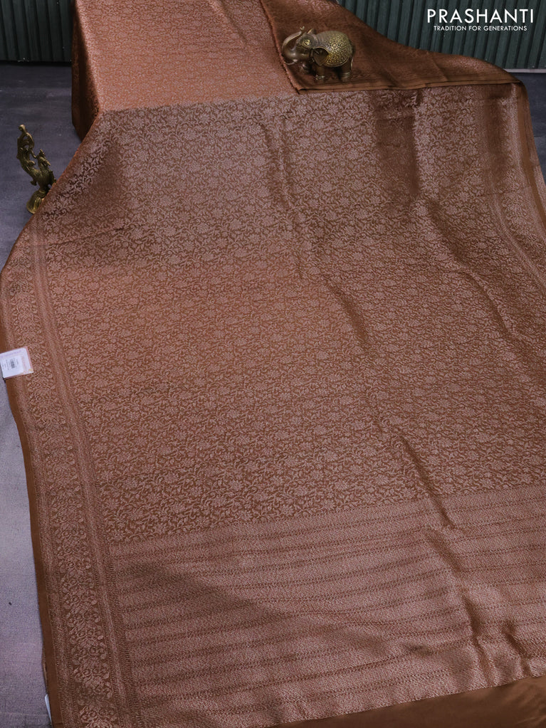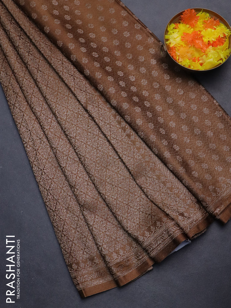 Banarasi semi crepe saree brown with allover thread & zari woven brocade weaves and woven border