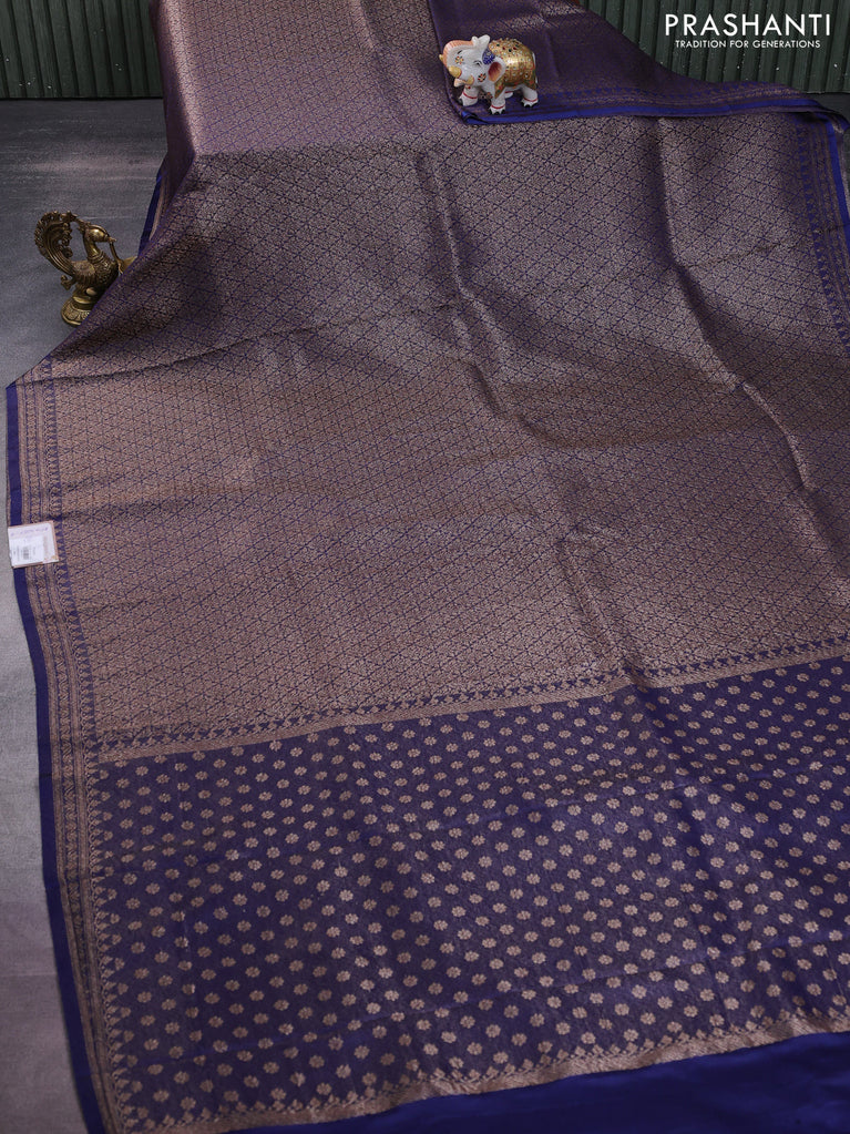Banarasi semi crepe saree blue with allover thread & zari woven butta weaves and woven border