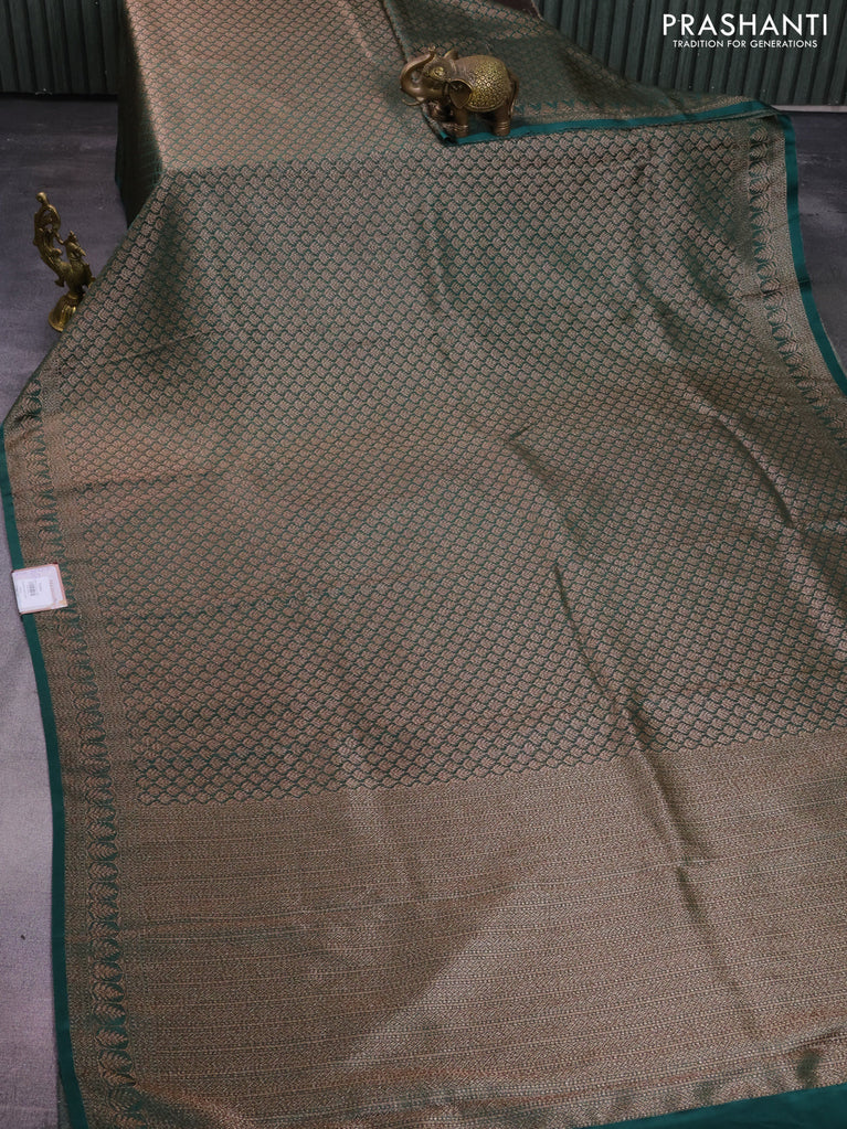 Banarasi semi crepe saree dark green with allover thread & zari woven brocade weaves and woven border