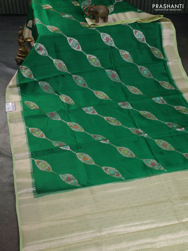 Banarasi poona silk saree green and pista green with silver & gold zari woven buttas and zari woven border