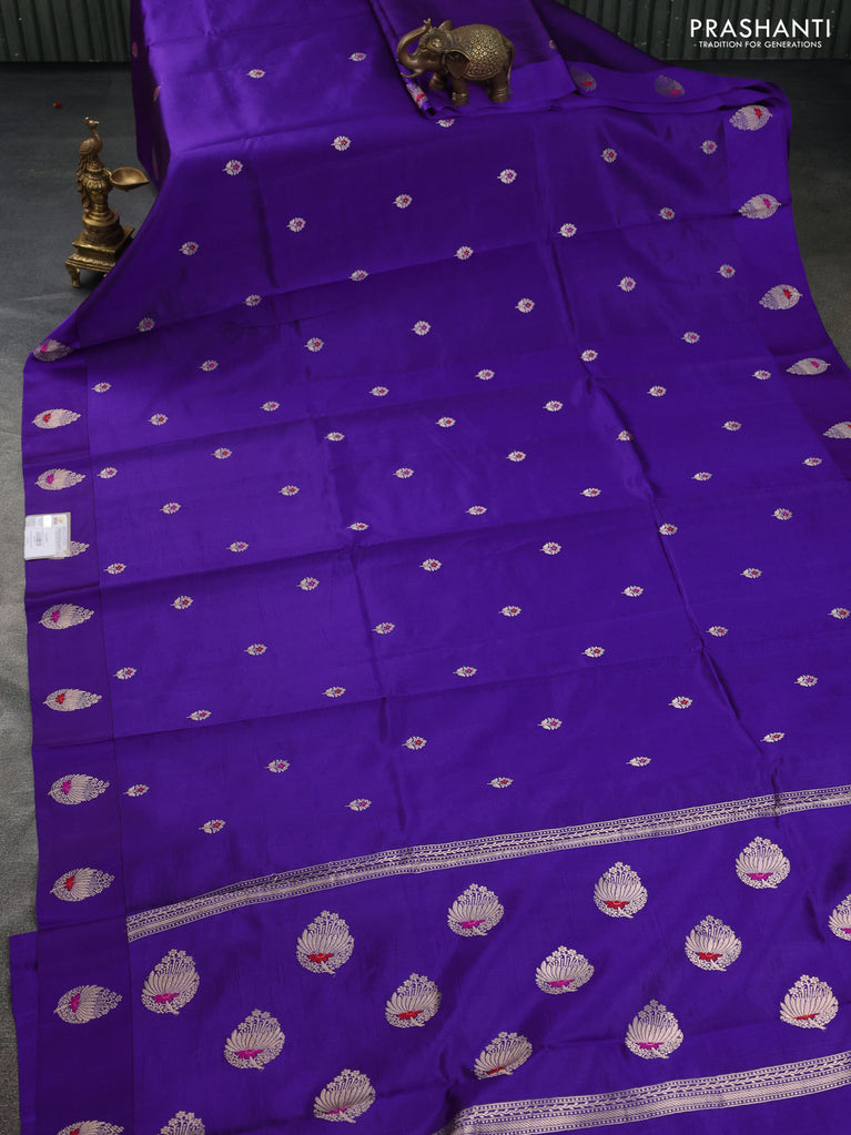 Banarasi poona silk saree violet with zari woven floral buttas and zari woven butta border