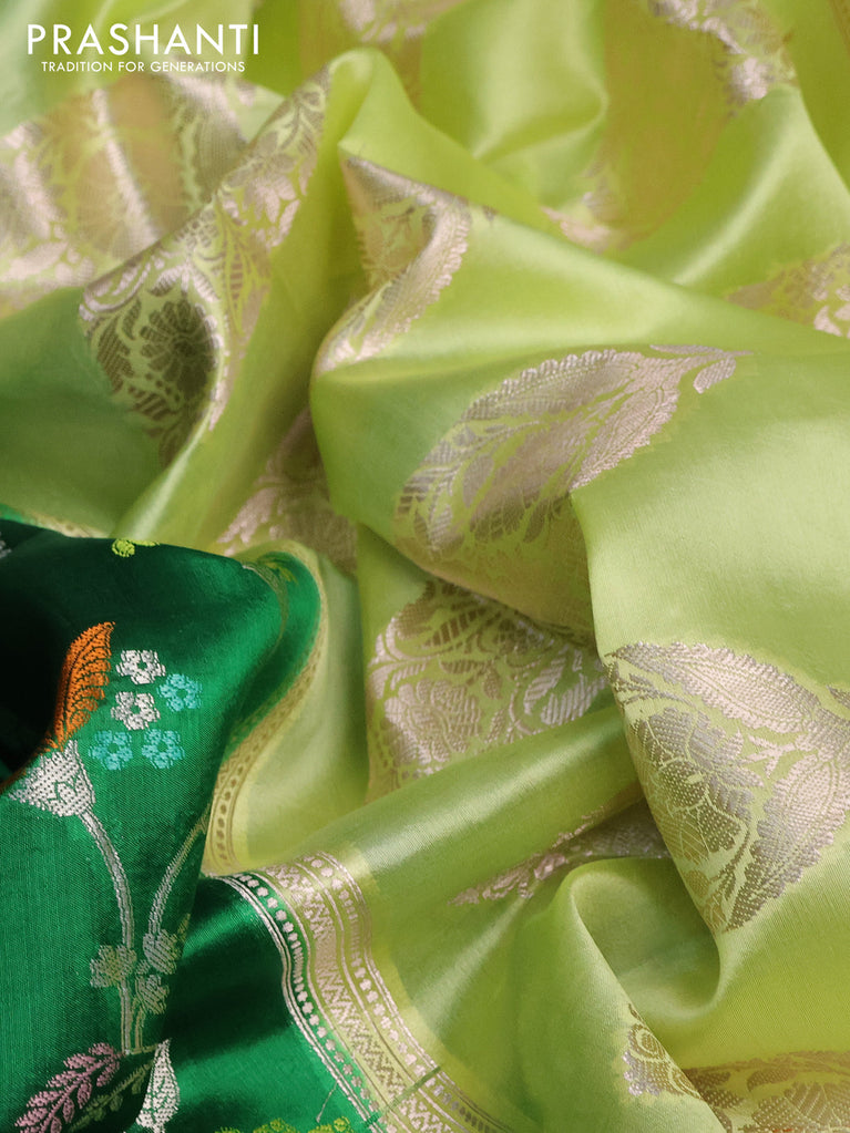 Banarasi poona silk saree green and pista green with allover zari woven mina weaves and zari woven simple border