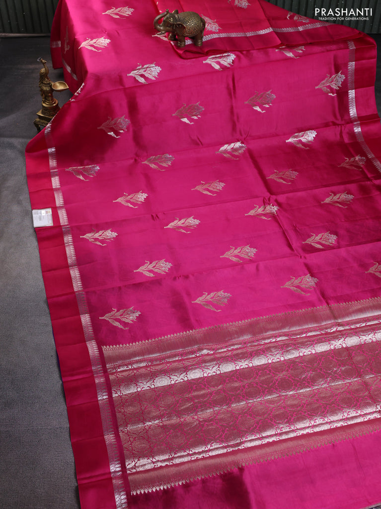 Banarasi poona silk saree pink and violet with zari woven floral buttas and zari woven border