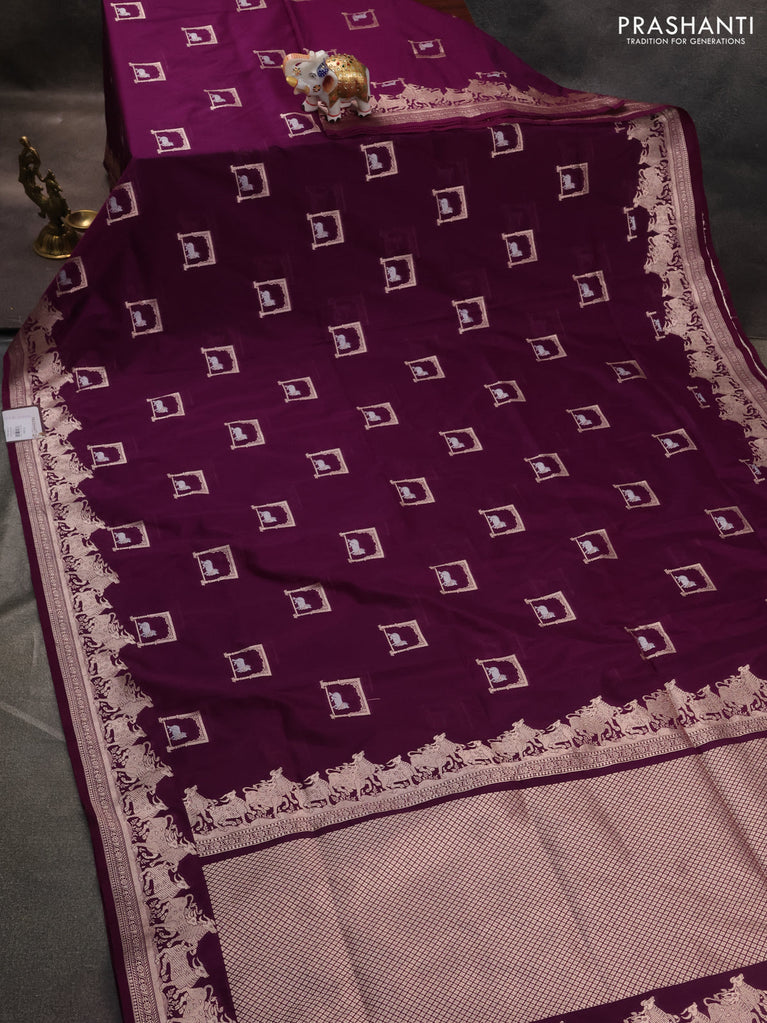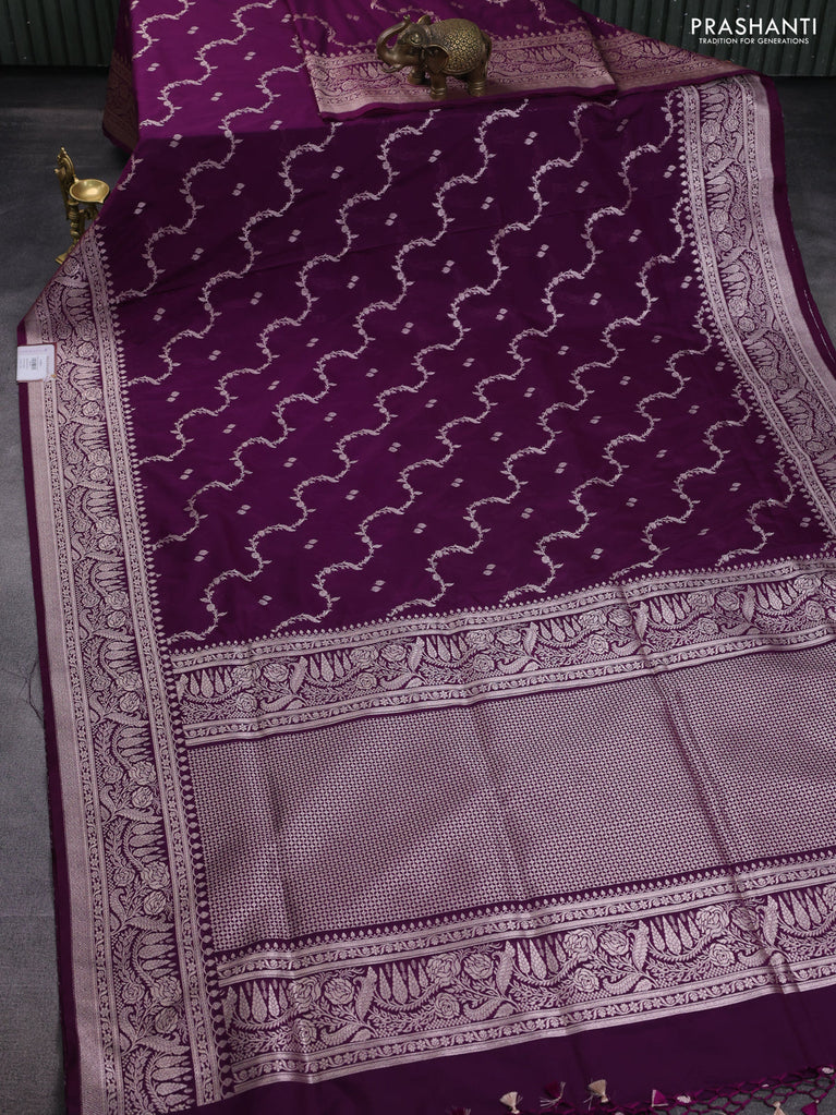 Banarasi semi katan saree deep purple with zari woven buttas and zari woven border