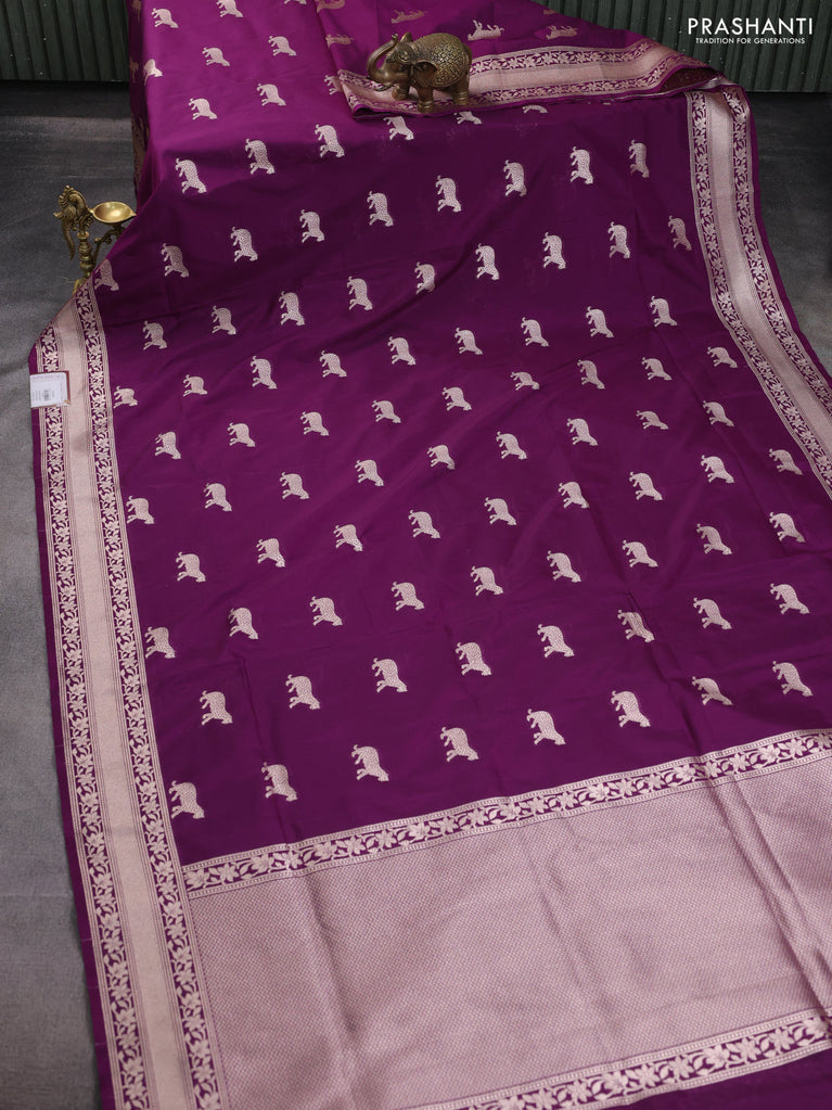 Banarasi semi katan saree deep purple with allover zari weaves and woven border