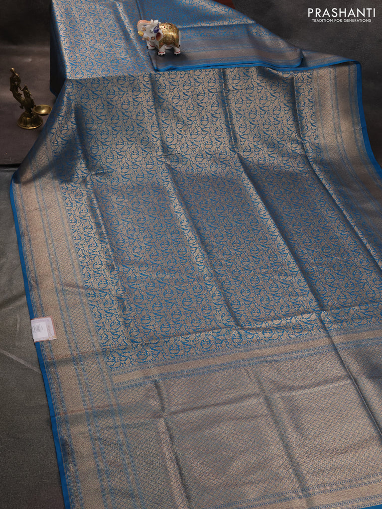 Banarasi semi katan saree cs blue with allover thread & zari woven brocade pattern and woven border