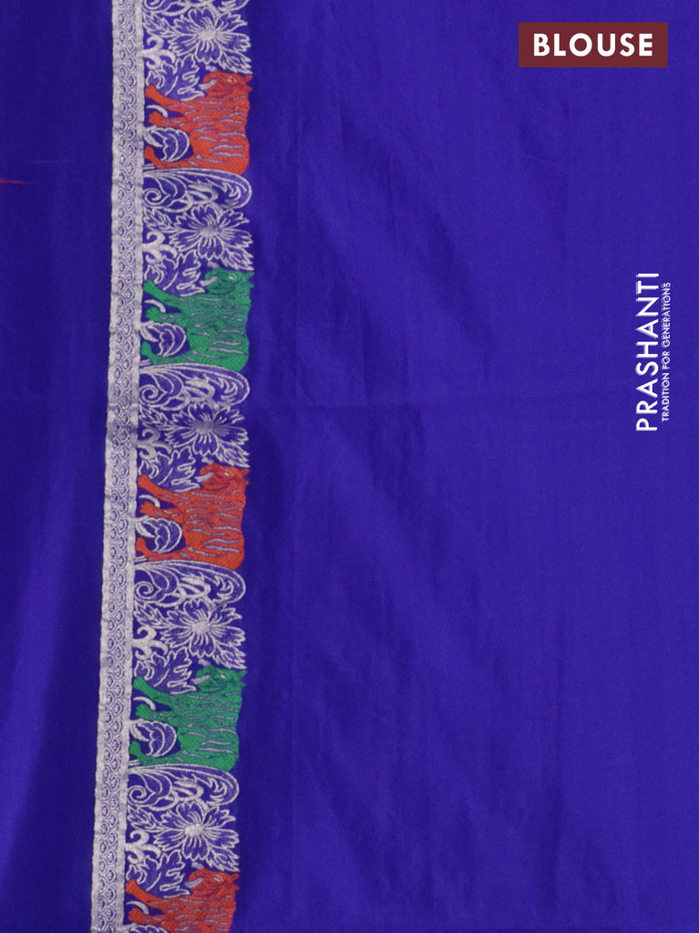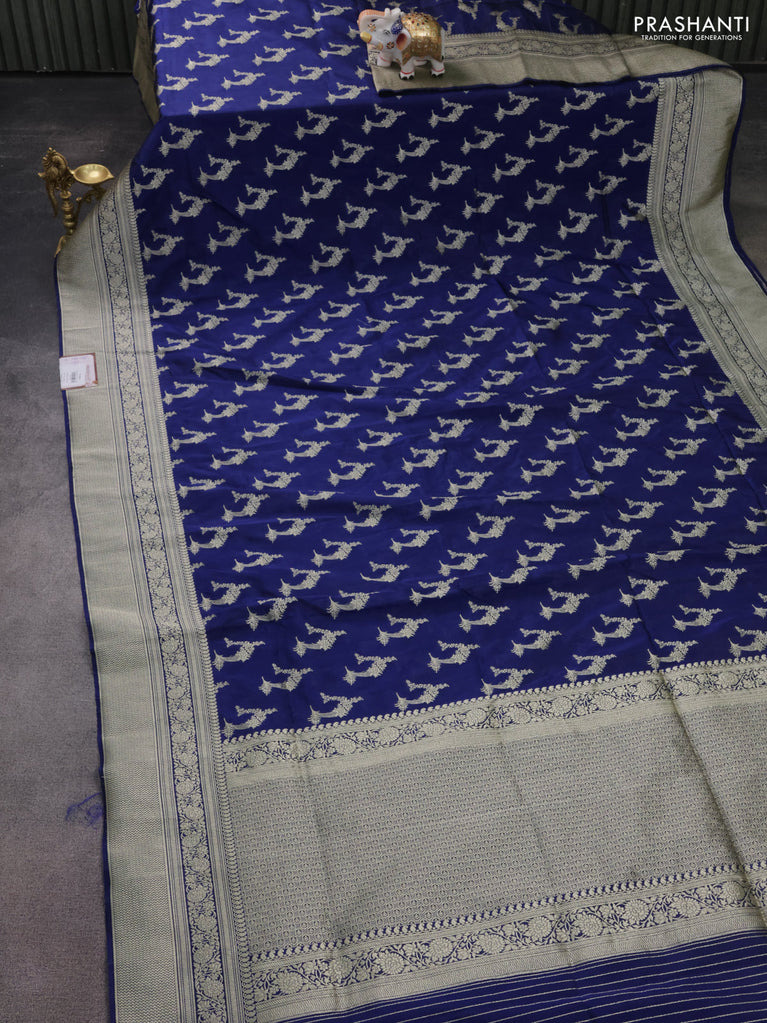 Banarasi semi katan silk saree dark blue with allover silver & gold zari weaves and deer design zari woven border