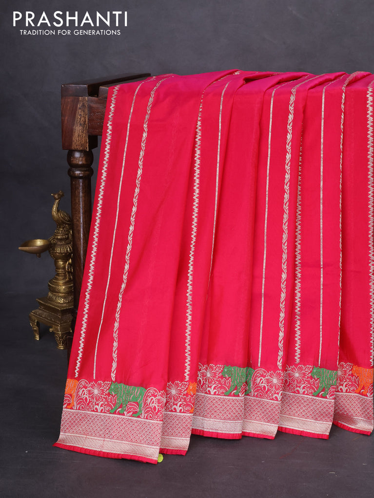 Banarasi semi katan silk saree dark pink with allover zari weaves and rich zari woven border