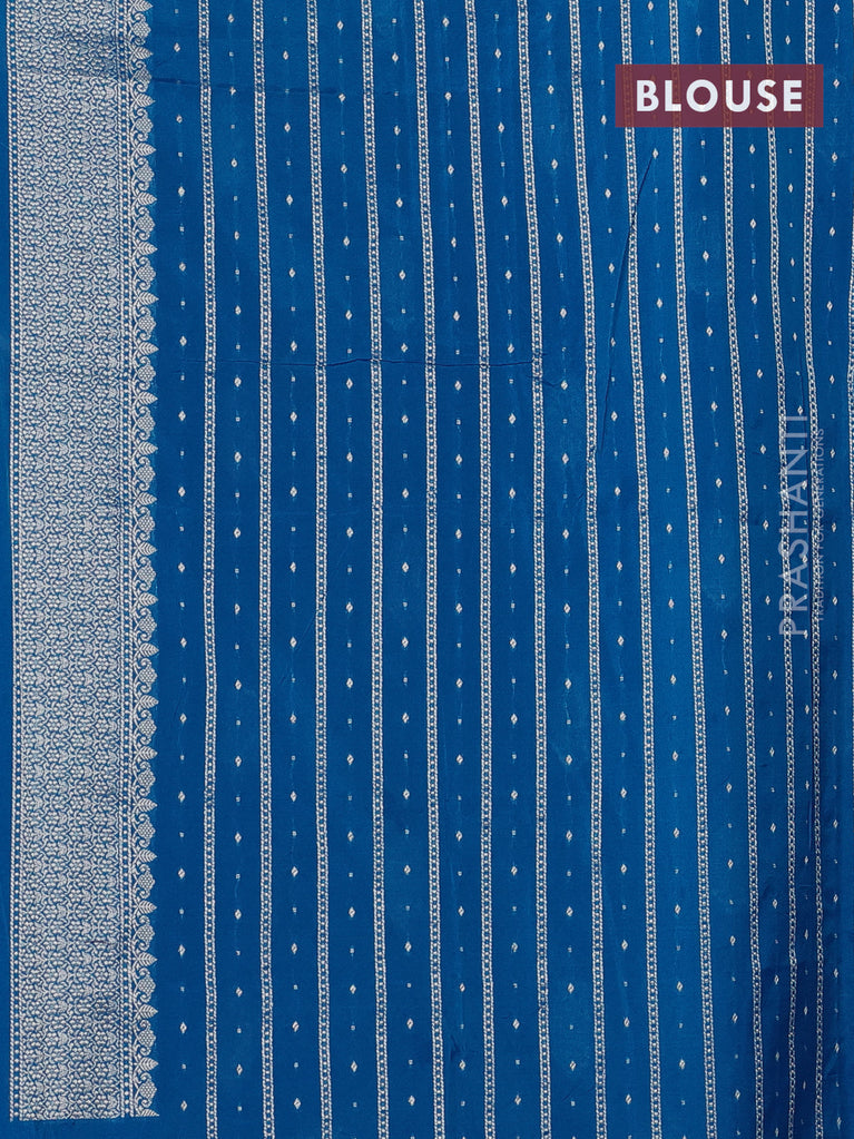 Banarasi semi katan silk saree dark blue with silver zari woven buttas and rich zari woven border