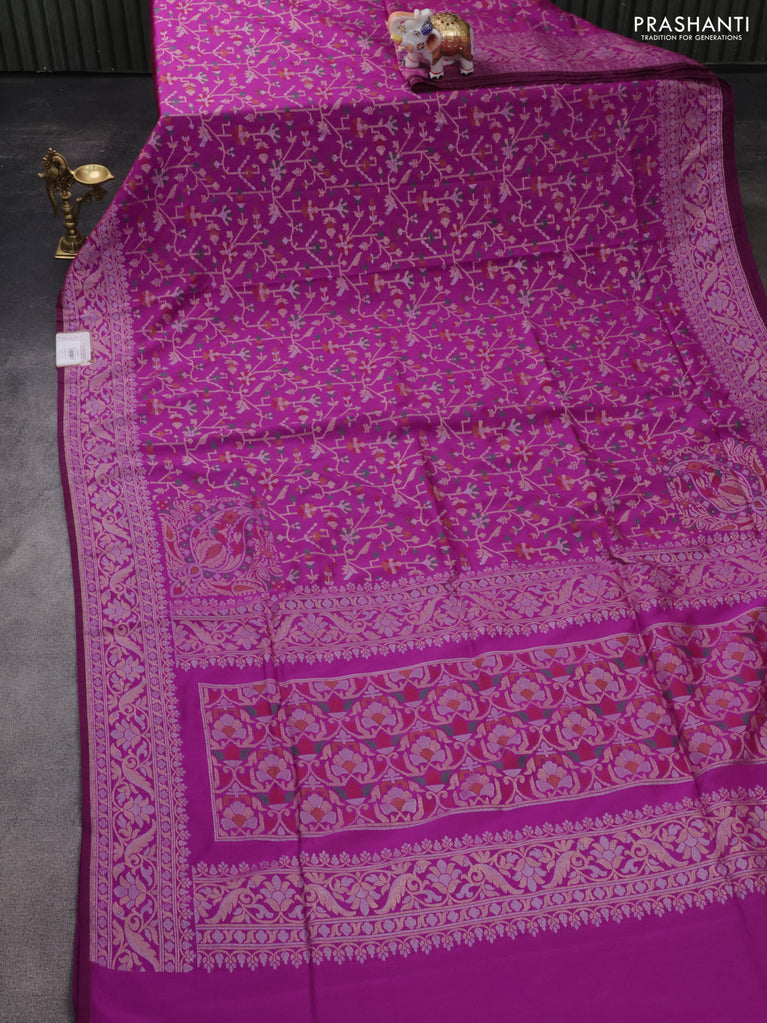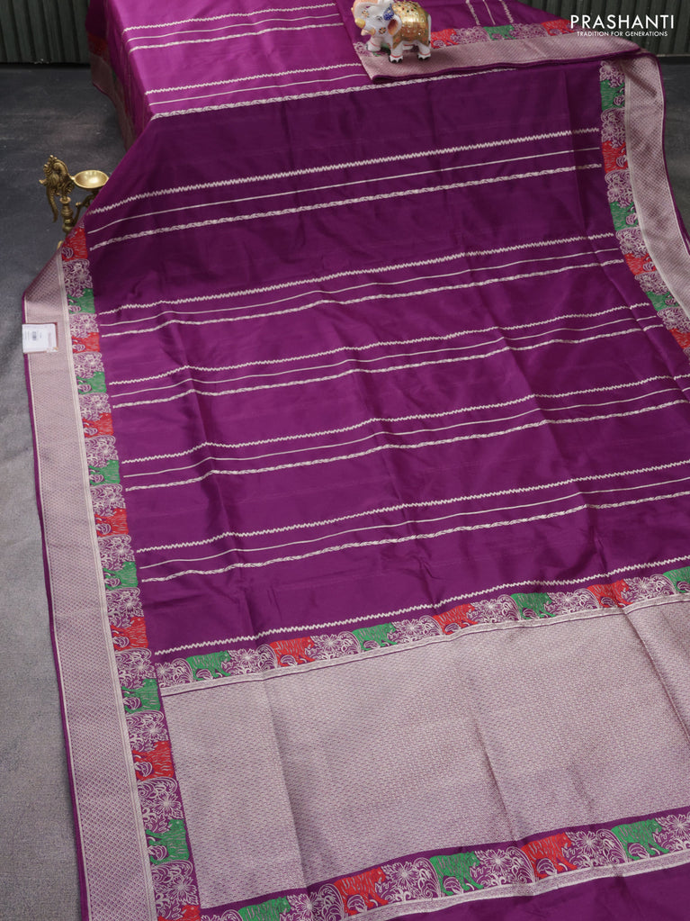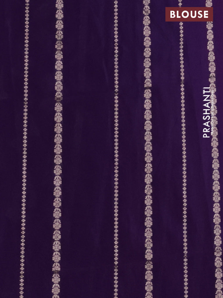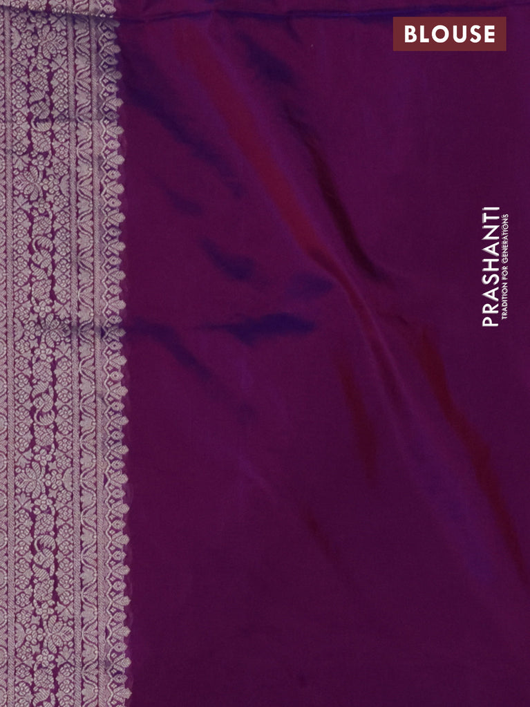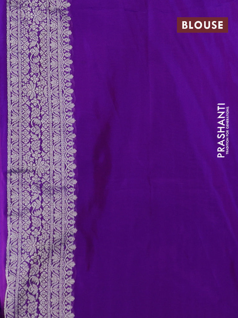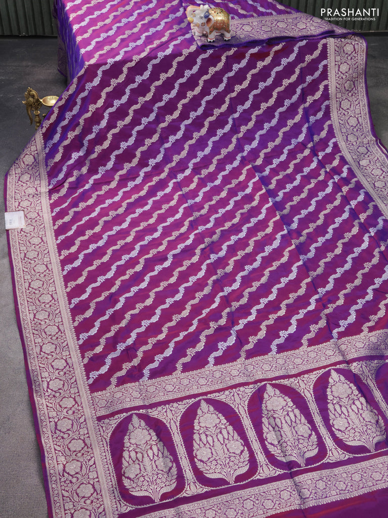 Banarasi semi katan silk saree purple with allover silver & gold zari weaves and floral zari woven border
