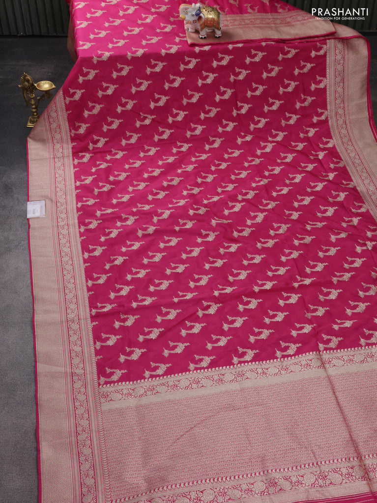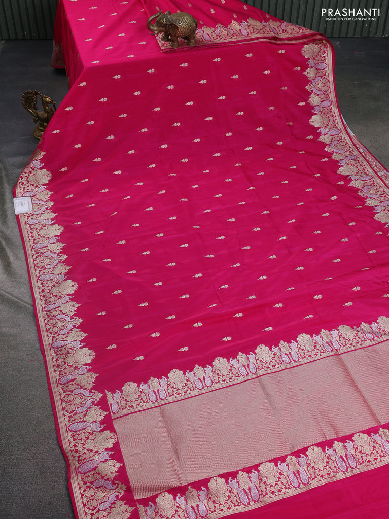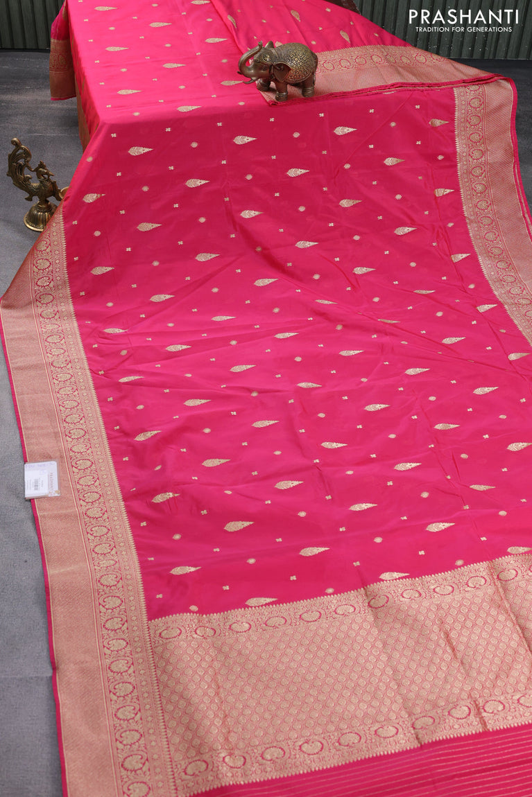 Banarasi semi katan silk saree pink with zari woven buttas and zari woven border