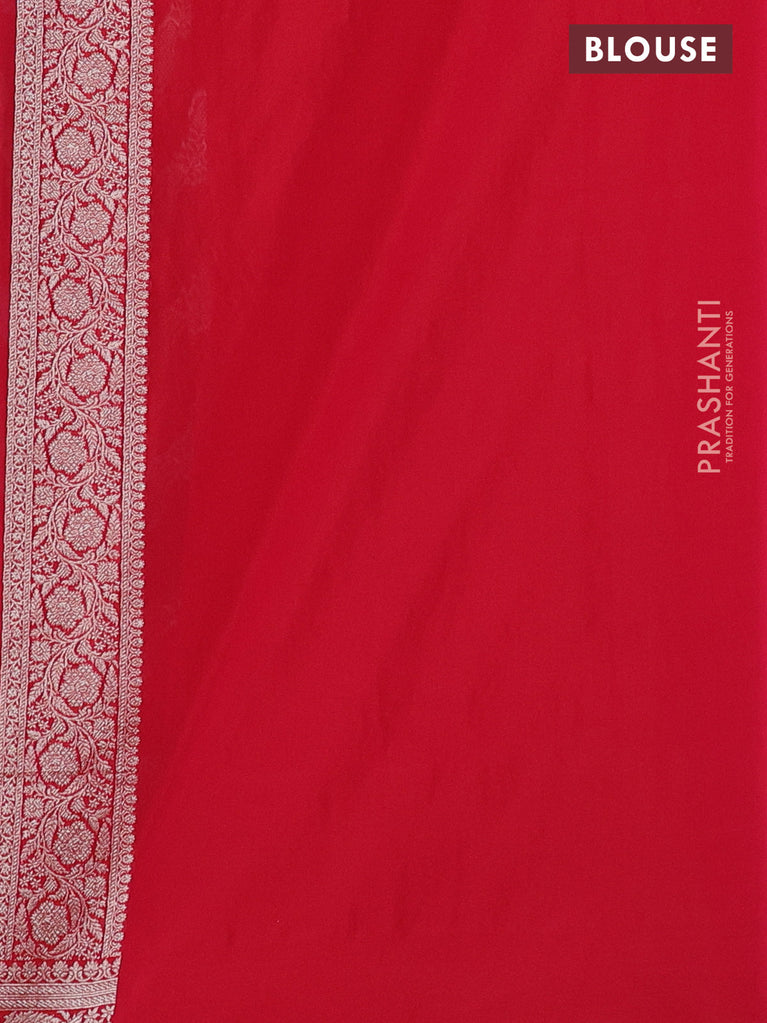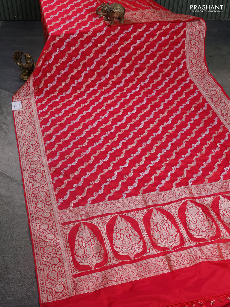 Banarasi semi katan silk saree red with allover silver & gold zari weaves and floral zari woven border