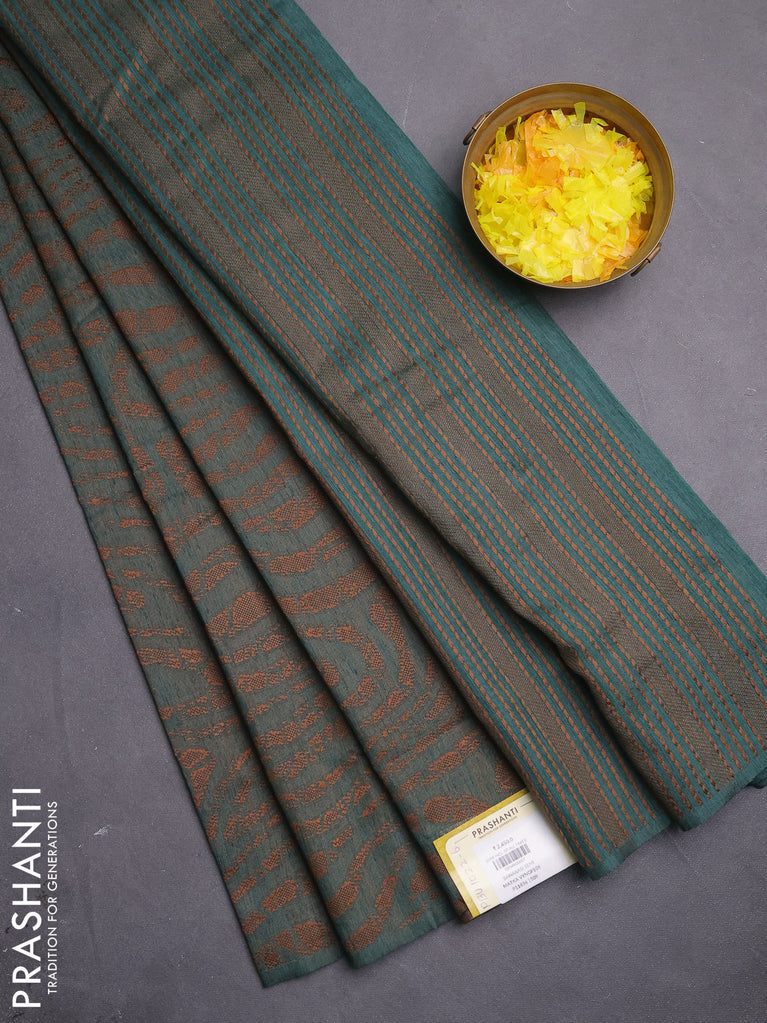 Banarasi semi matka saree green shade with allover thread weaves in borderless style