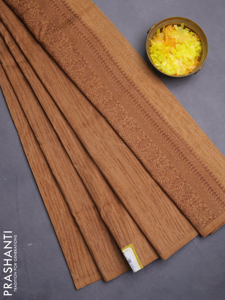 Banarasi semi matka saree dark sandal with allover thread weaves in borderless style