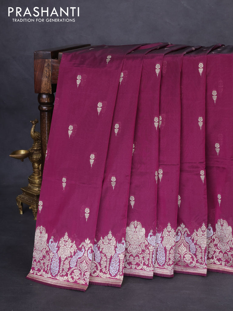 Banarasi semi katan silk saree wine shade with zari woven buttas and zari woven border