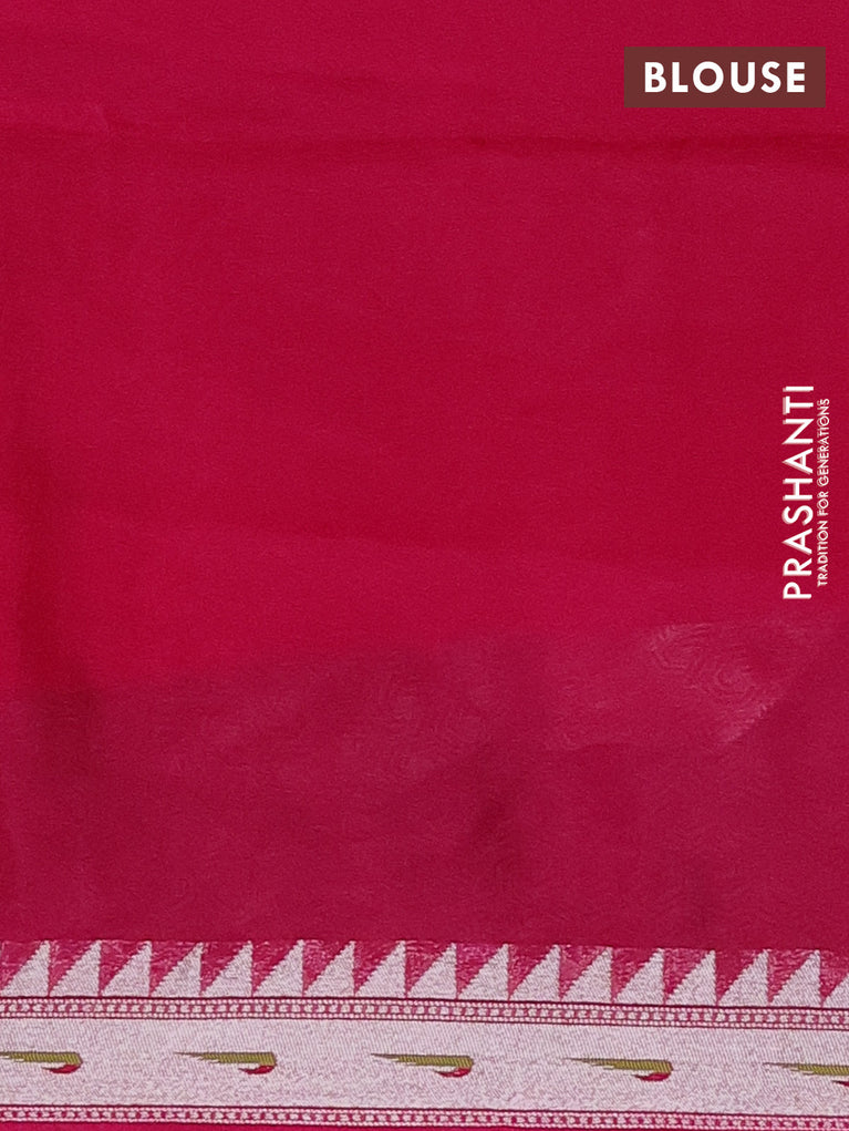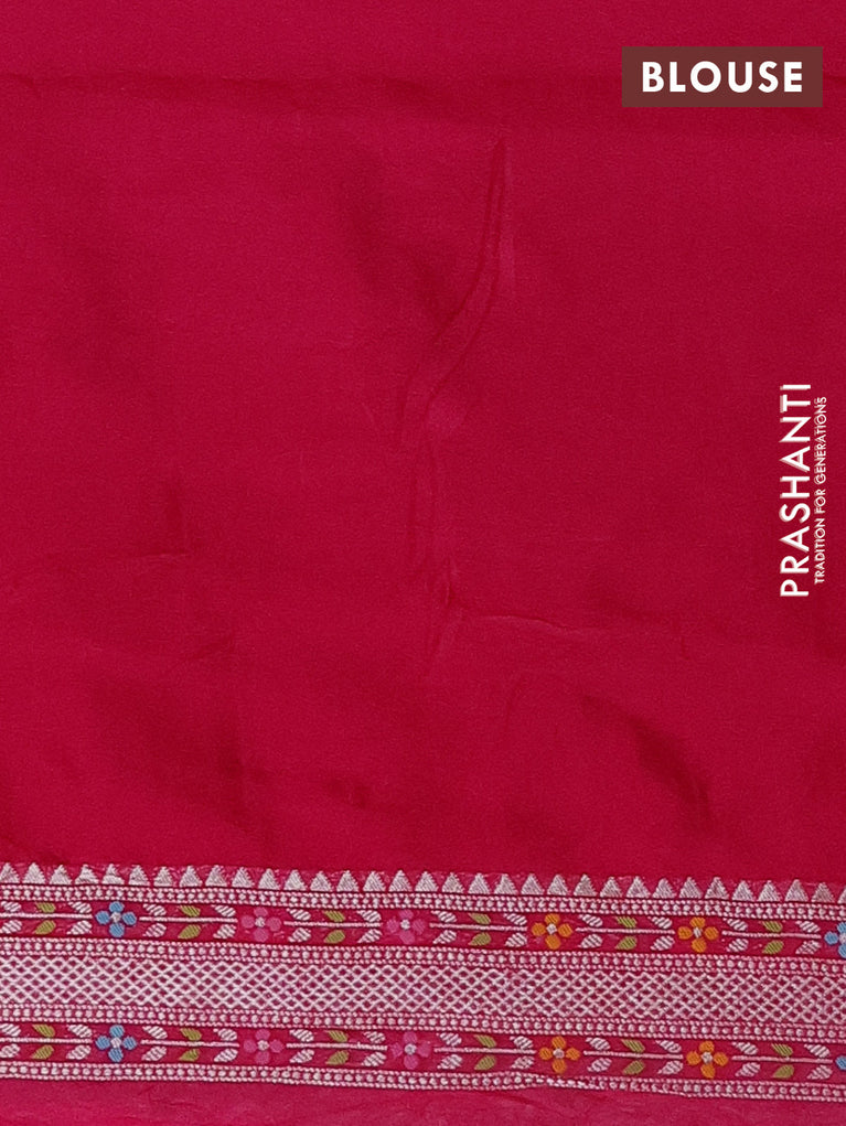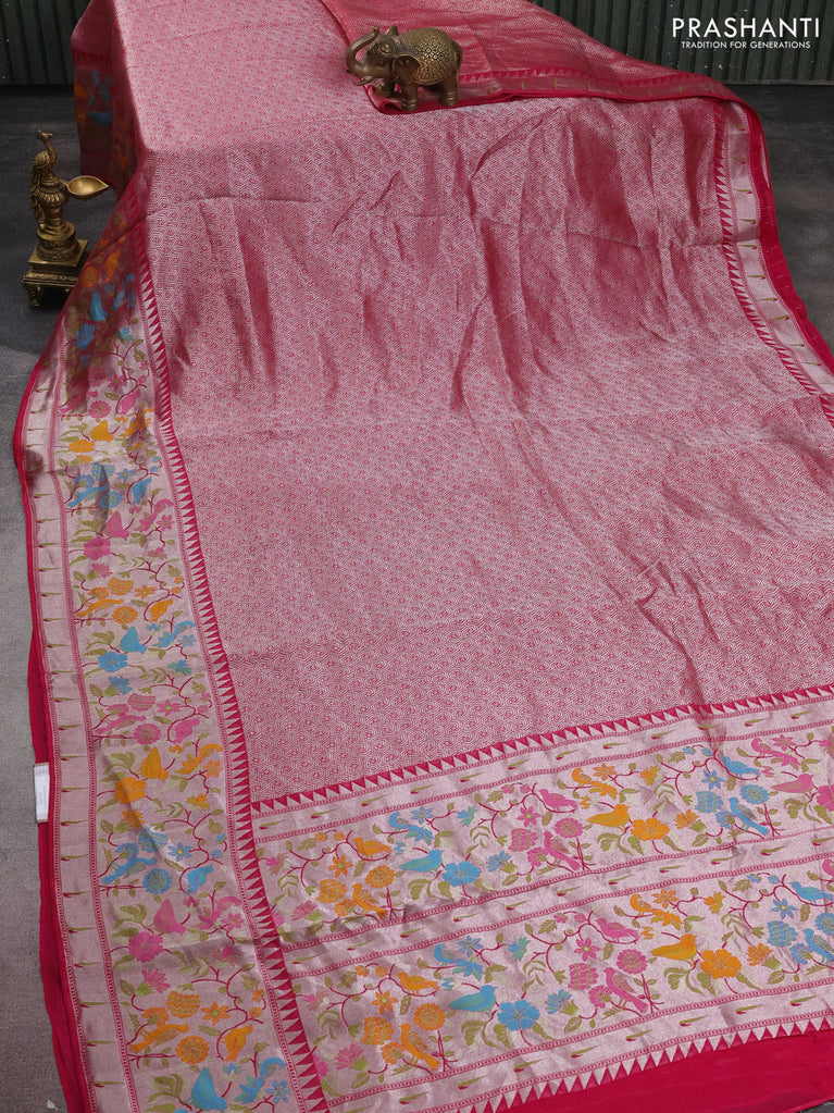 Banarasi semi raw silk saree pink with allover silver zari woven brocade weaves and floral design paithani border