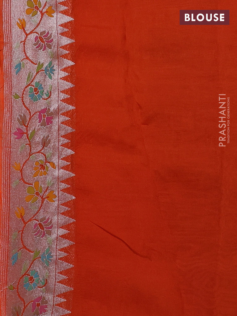 Banarasi semi raw silk saree orange with allover silver zari woven brocade weaves and floral design paithani border