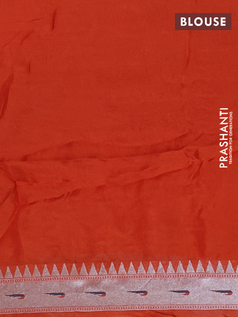 Banarasi semi raw silk saree orange with allover silver zari woven paithani weaves and silver zari woven border