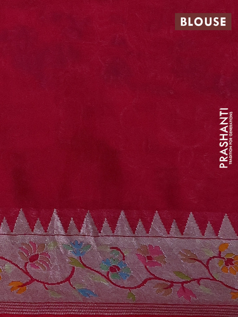 Banarasi semi raw silk saree red with allover silver zari woven brocade weaves and floral design paithani border