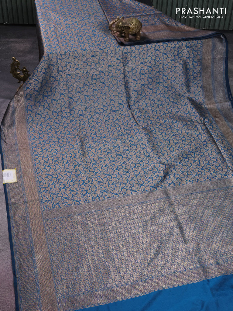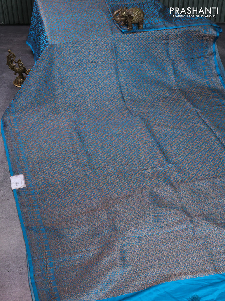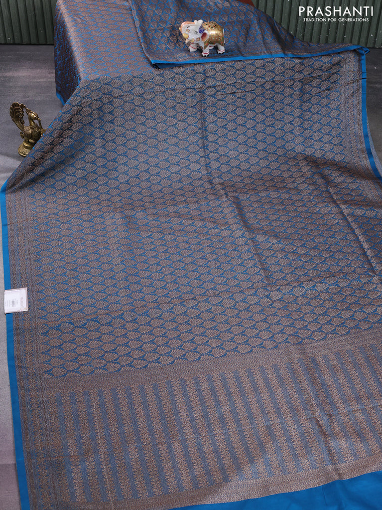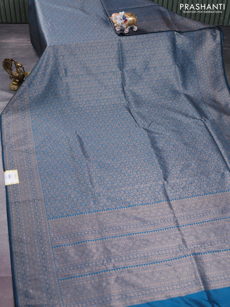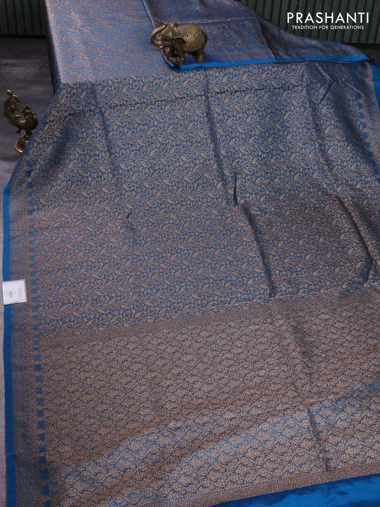 Banarasi semi silk saree cs blue with allover thread & zari weaves and woven border