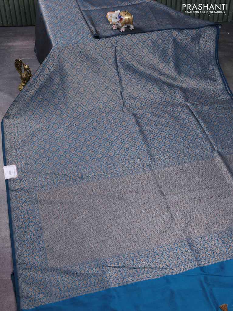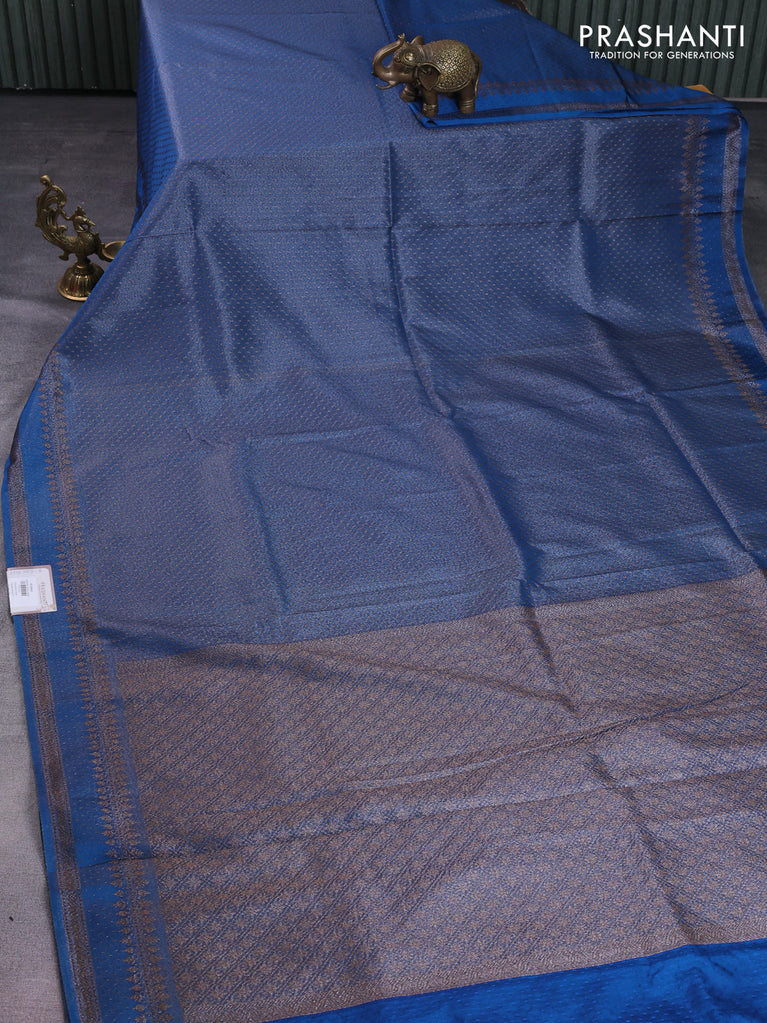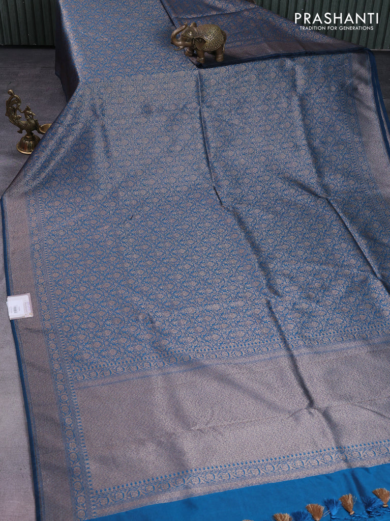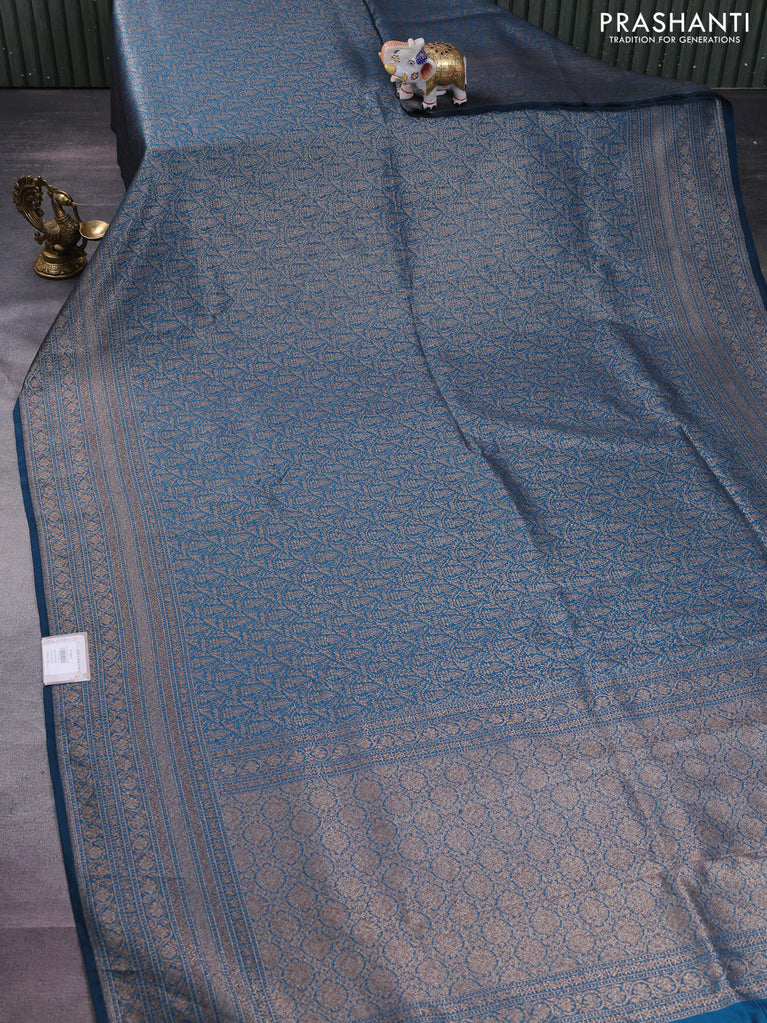 Banarasi semi silk saree cs blue with allover thread & zari weaves and woven border