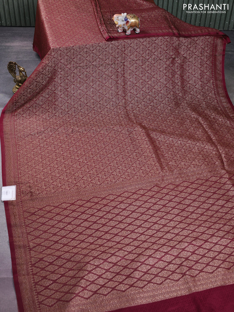 Banarasi semi silk saree deep maroon with allover thread & zari weaves and woven border