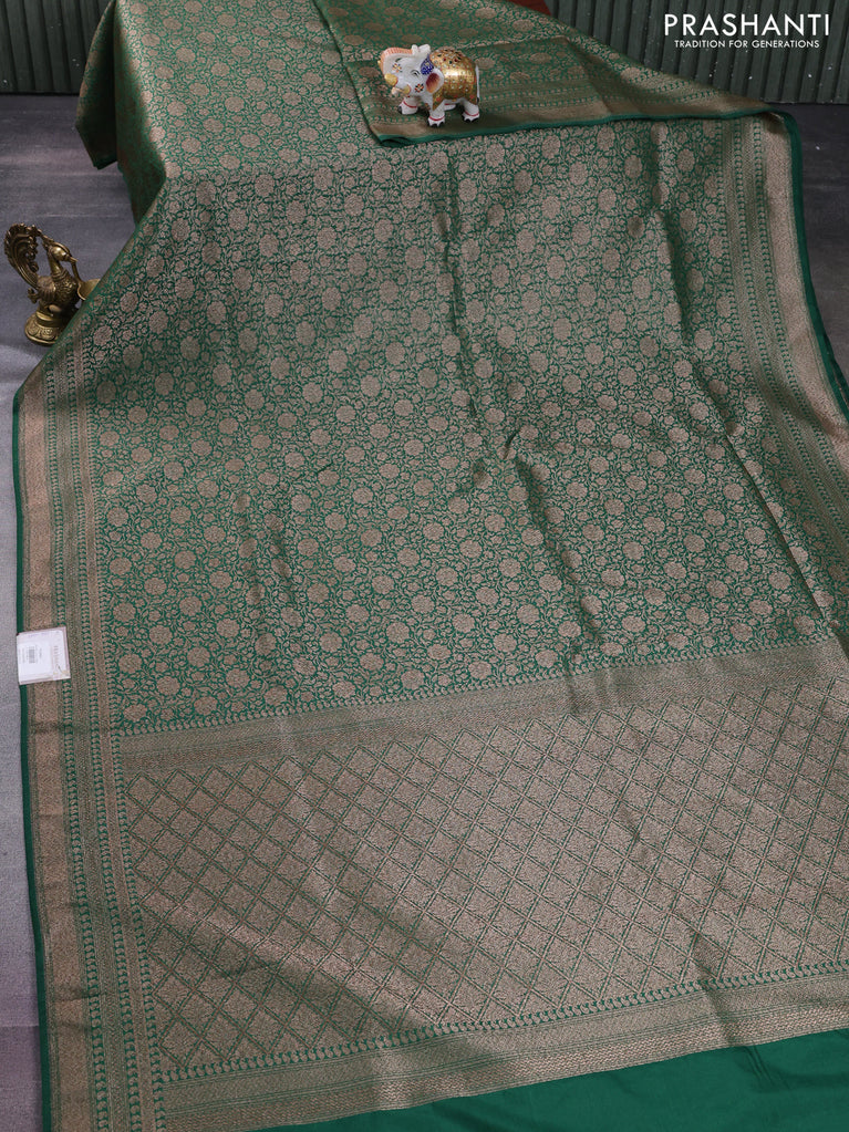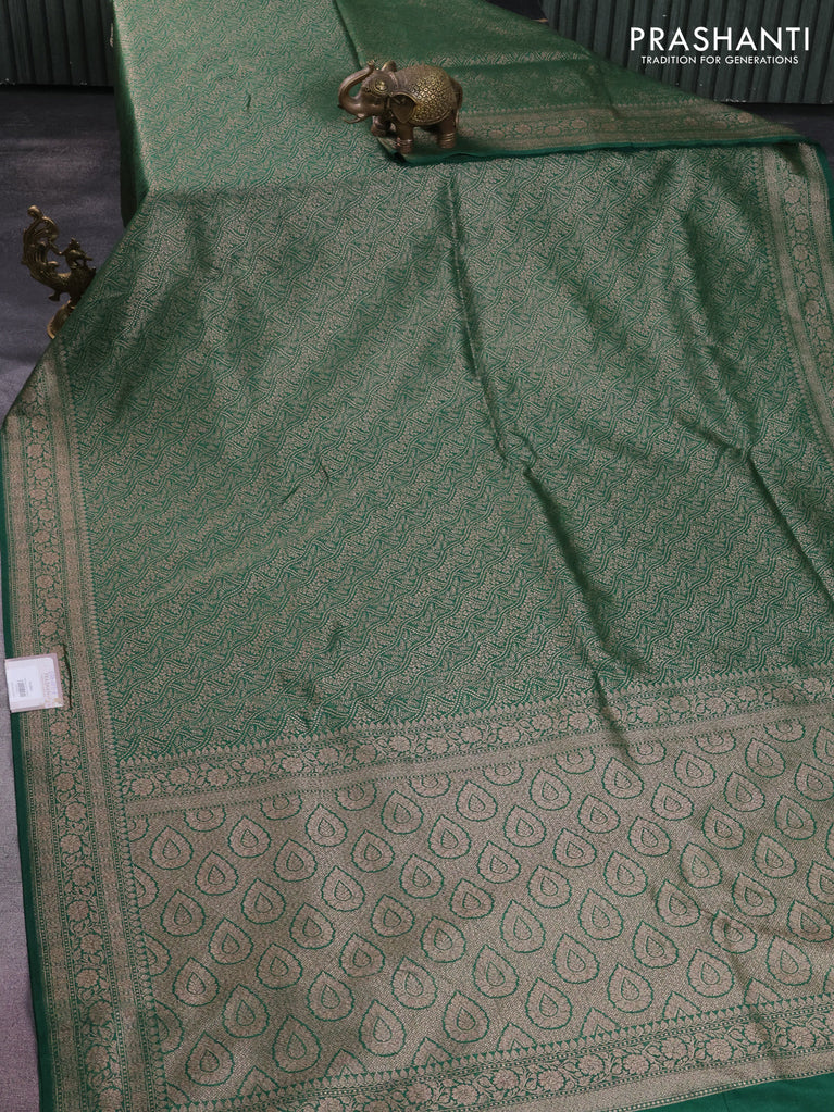 Banarasi semi silk saree dark green with allover thread & zari weaves and woven border
