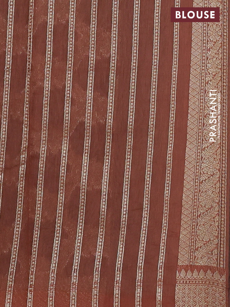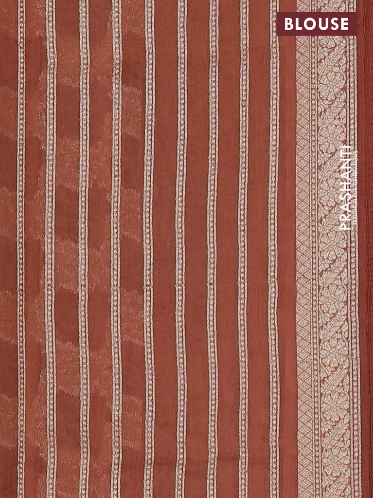 Banarasi silk cotton saree rust shade and pastel blue with allover thread & zari woven butta weaves and woven border