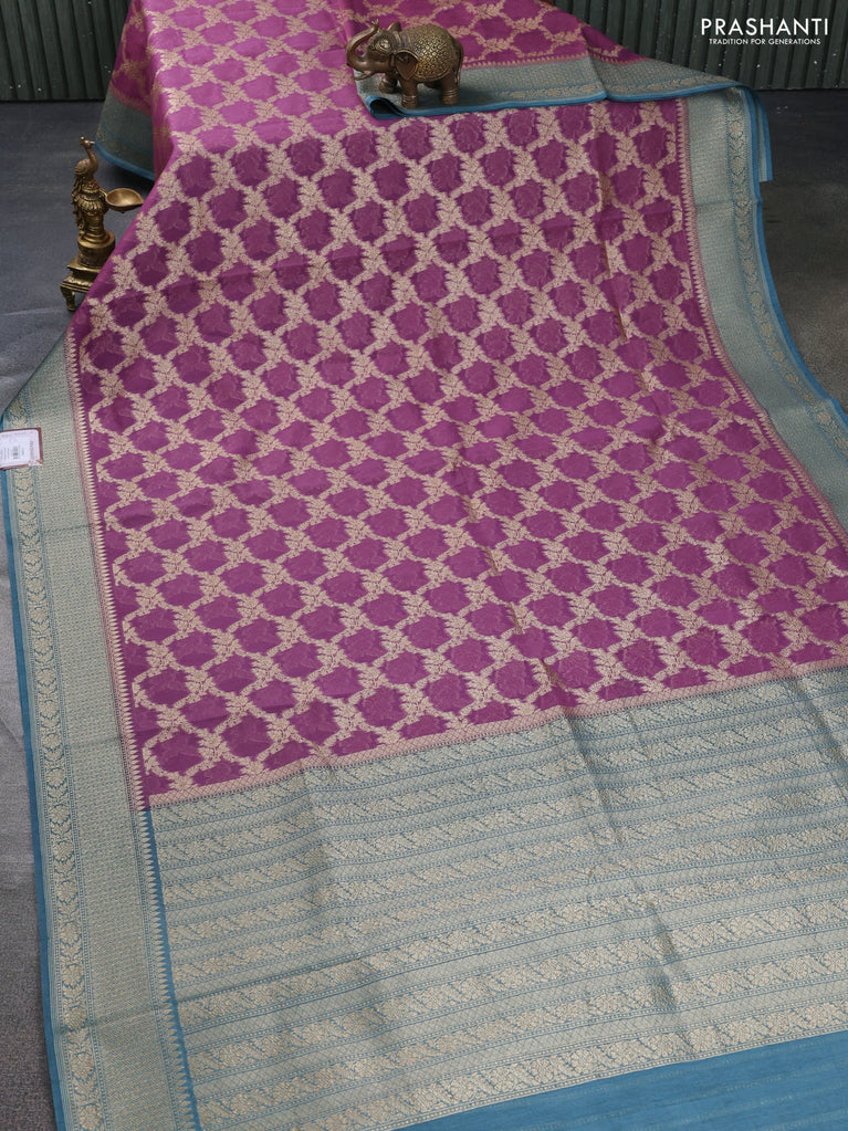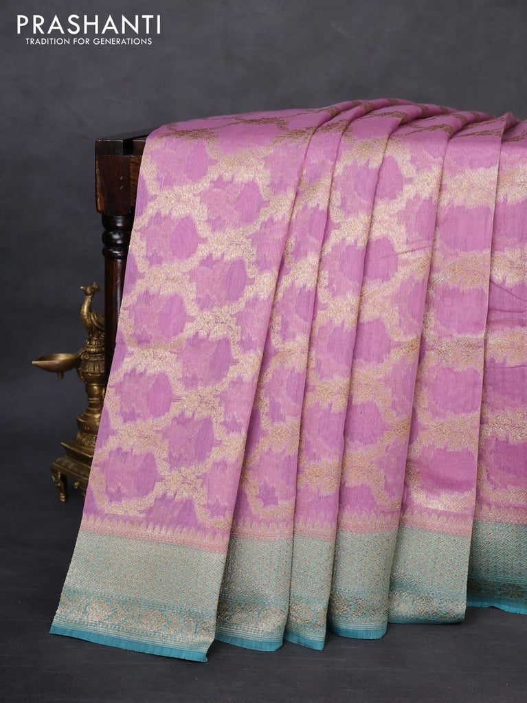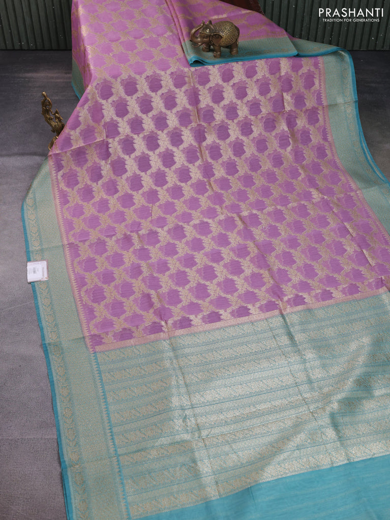 Banarasi silk cotton saree pastel purple and teal blue with allover zari weaves and zari woven border