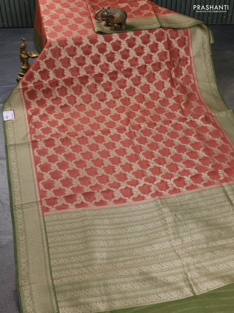 Banarasi silk cotton saree rust shade and sap green with allover thread & zari weaves and woven border